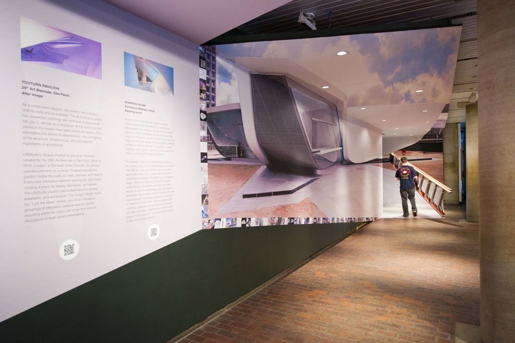 L’installazione è concepita per interagire con il visitatore, non si presenta, pertanto, come una vetrina o come un oggetto finito: consiste in un’esperienza dinamica che coinvolge l’osservatore e che vede protagonisti 10 progetti migliori che illustrano 25 anni della produzione di UNStudio.