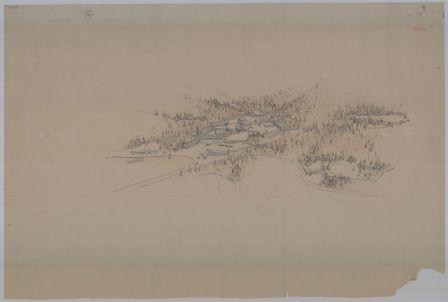 Veduta prospettica del Villaggio eni a Borca di Cadore di Edoardo Gellner  Università Iuav di Venezia, SBD – Archivio Progetti, Fondo Edoardo Gellner