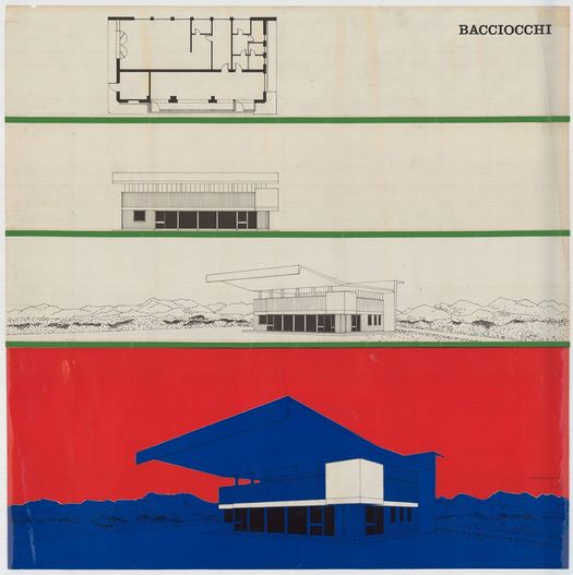 Intervento di Costantino Dardi sul modello di stazione di servizio Agip (tipo Bacciocchi, 1952), 1972 Università Iuav di Venezia, SBD – Archivio Proge