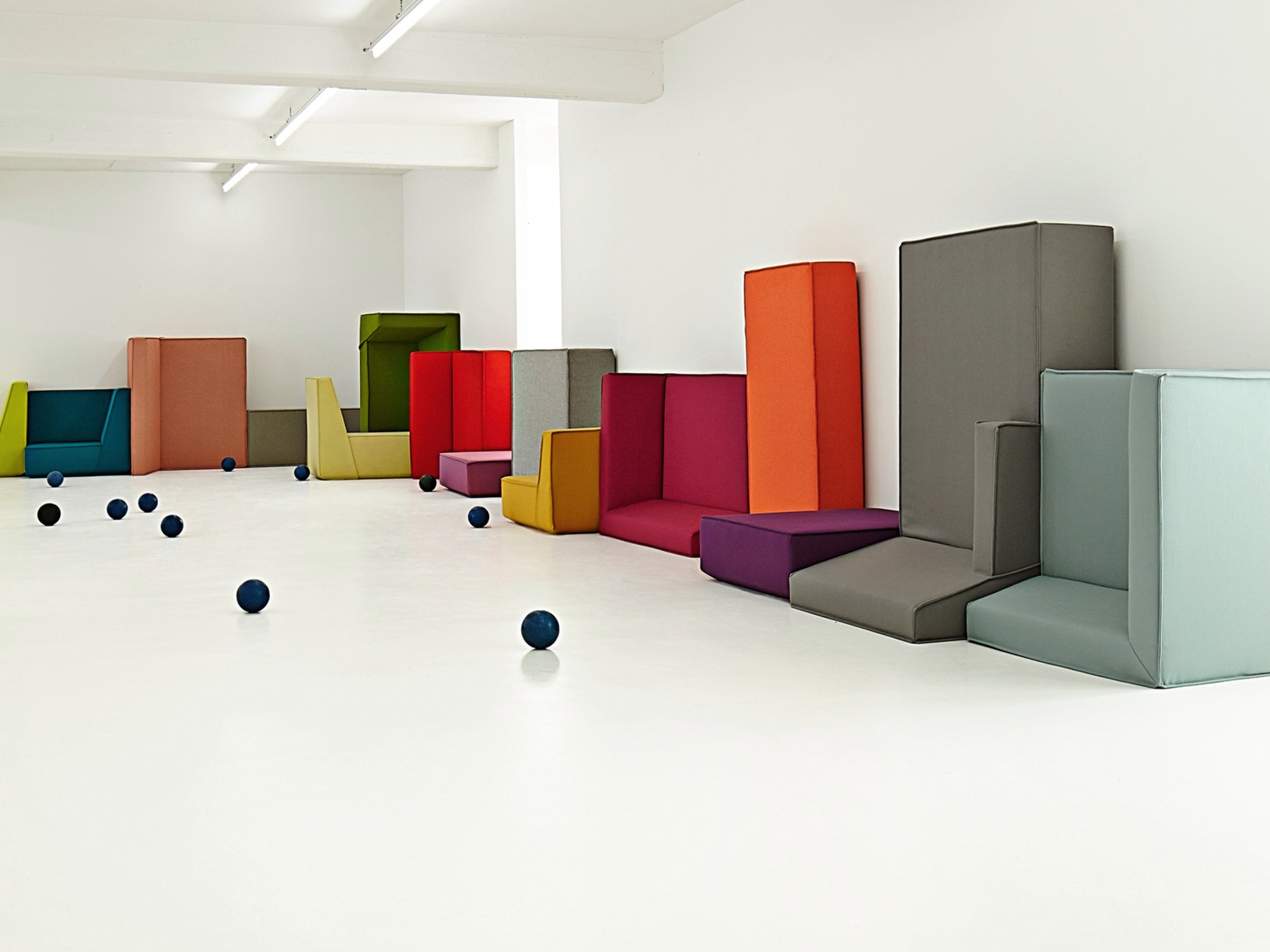 L'intelligente sistema a incastro invisibile consente di montare gli elementi senza l'utilizzo di utensili. Profili di legno piegati a L uniscono gli elementi e li incastrano insieme rendendoli stabili. Ad essi si accompagnano rivestimenti rimovibili dimensionati su misura, che avvolgono i moduli e vengono messi in tensione con chiusure in velcro oltre che con cerniere lampo invisibili dall'esterno. Le operazioni sono semplici e non richiedono particolare destrezza.