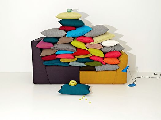 I cuscini costituiscono le parti modulari più piccole del divano Cubit. Sempre adatti ai formati degli elementi di seduta, spaziano dal classico allo stravagante. Novità assoluta: il cuscino doppio. La sua cucitura consente di ripiegare il cuscino, raddoppiando la sua altezza e modificando la sua funzione.
