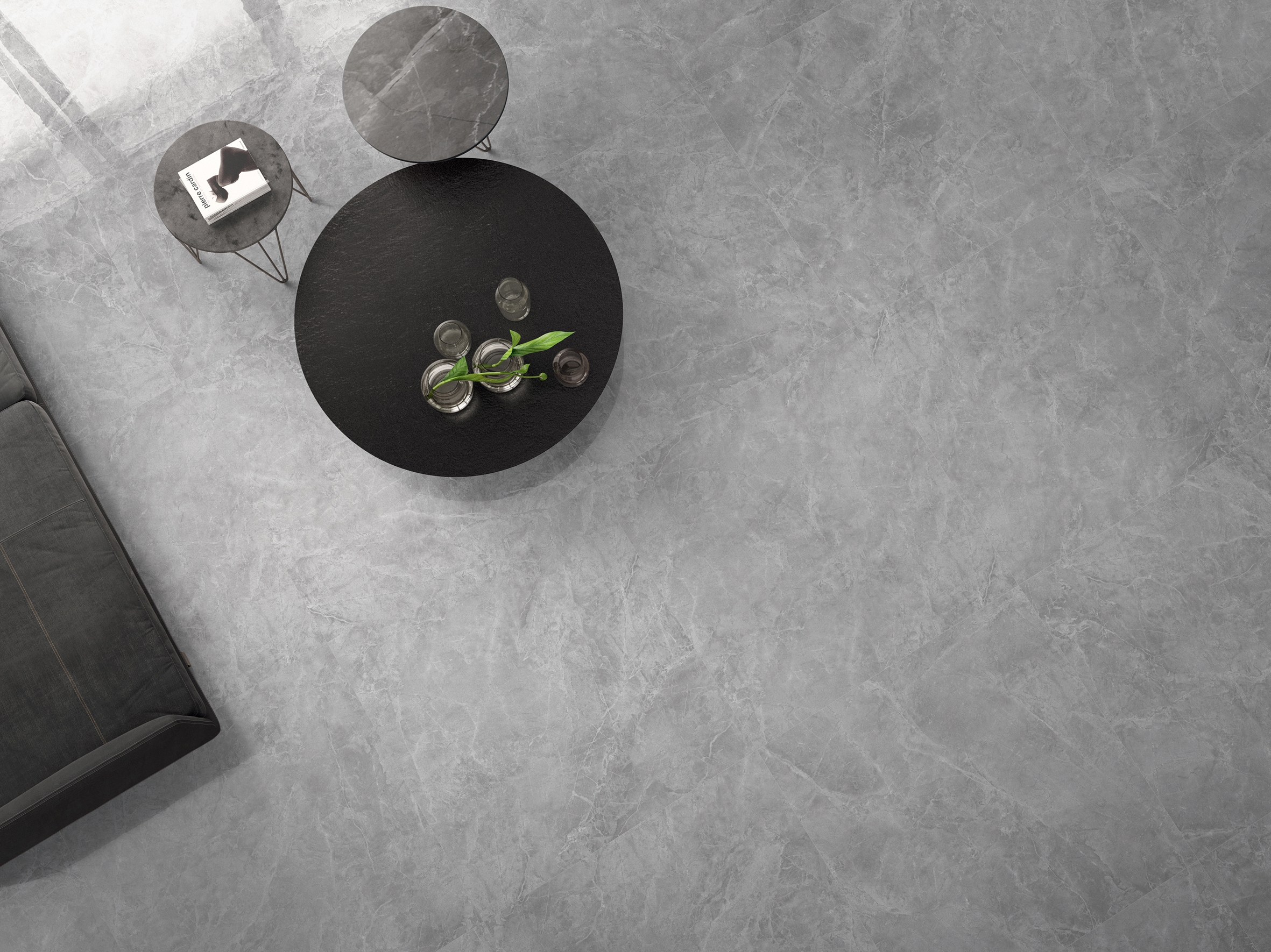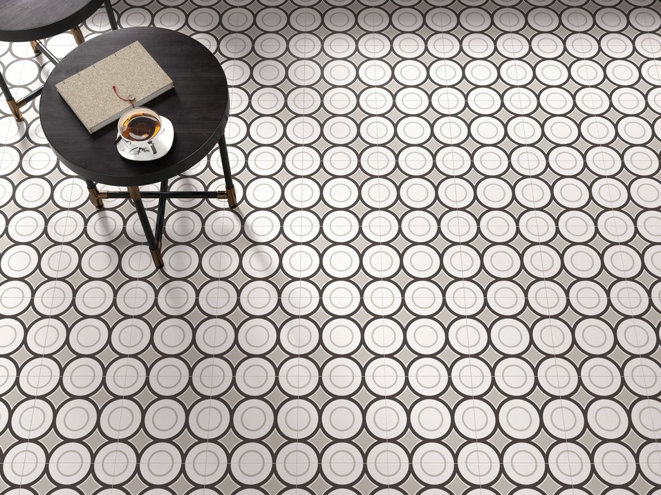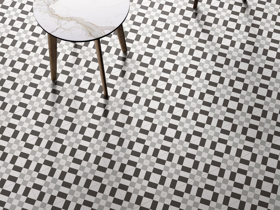 Interprete d'eccezione dei pavimenti è stata la collezione in gres porcellanato Royal di Ceramica Sant'Agostino. Utilizzata nelle quattro varianti di colore, il suo insolito formato (75x75 cm) ha evocato il parquet con il montaggio tradizionale "a pannelli", sistema conosciuto come "panneau de parquet D'Aremberg ou Versailles" perché utilizzato nella Reggia del Re Sole, ma che trova origine proprio dal Rinascimento fiorentino. Il pavimento disposto in questo modo sottolinea i "fuori squadro" dell'edificio, mettendo in risalto la stratificazione urbana che ha portato lo stabile all'attuale conformazione, operata alla fine del XIX sec.