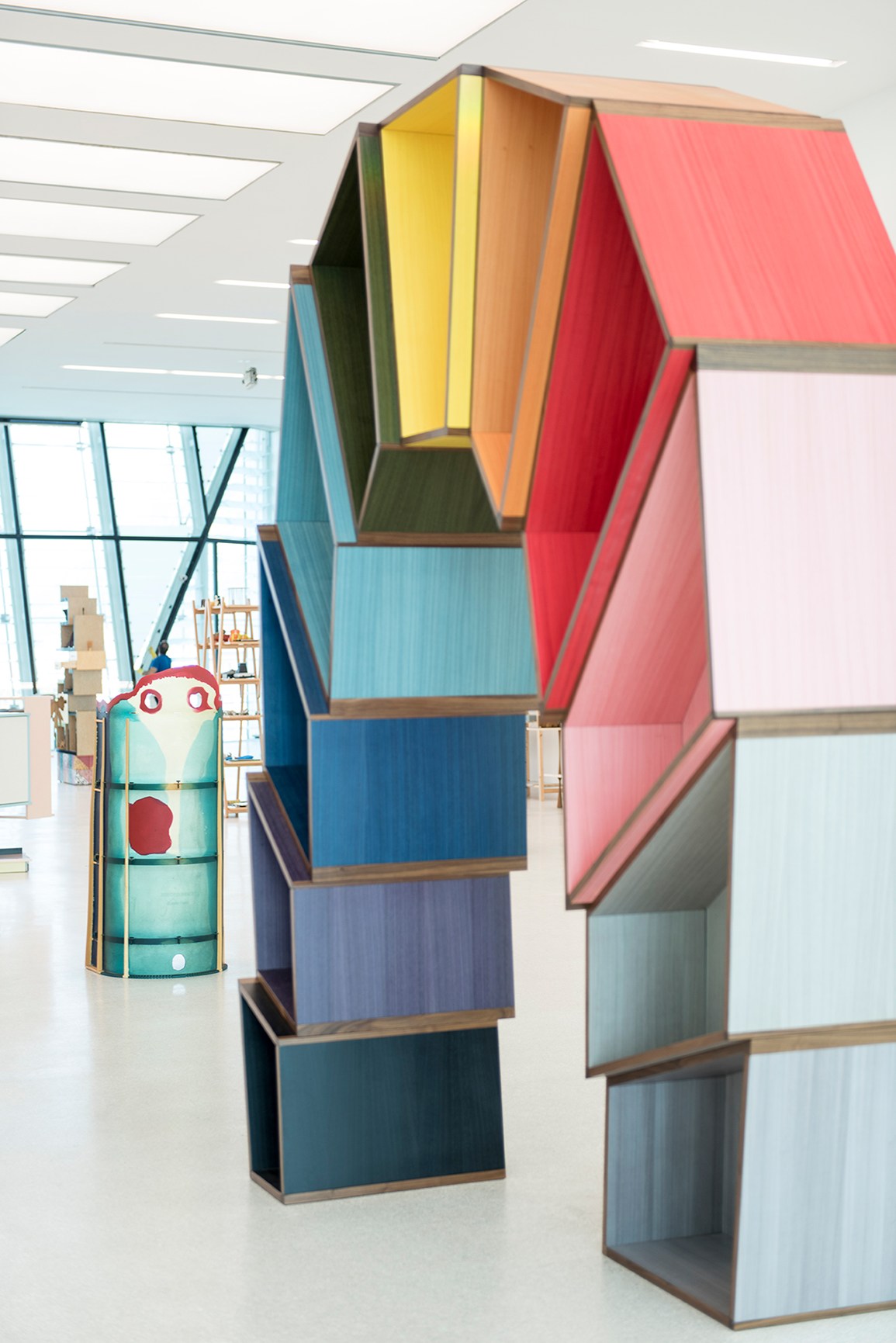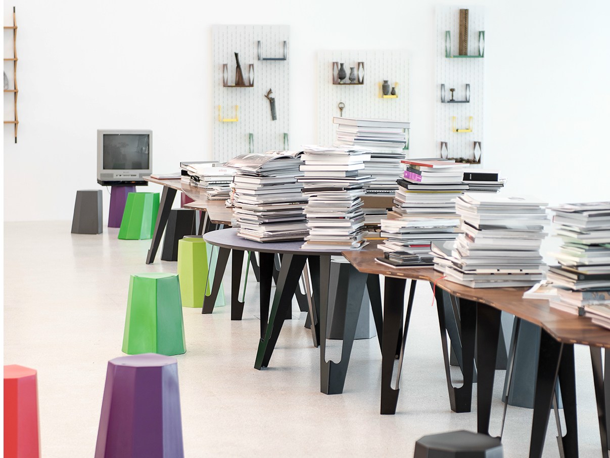 Ogni elemento espositivo è utilizzato per esporre collezioni di oggetti dagli archivi personali di amici e colleghi di Gamper, oltre ad un’ampia biblioteca di pubblicazioni sui mobili contemporanei da tutto il mondo.