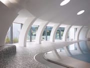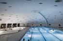 10/12/2015 - Un edificio a forma di boomerang abbraccia un grande padiglione che ricorda un girasole, e che si schiude meccanicamente affacciandosi all’esterno, lo spazio. La piscina Tournesol, in Francia, sceglie HI-MACS® per tornare nel futuro.