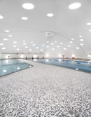 Gli spazi sono stati completamente riorganizzati, ma senza modifiche strutturali, nel completo rispetto del carattere unico dell’edificio originale. Gli spogliatoi, misti, aperti e spaziosi, sono ad esempio stati spostati dal nucleo centrale e inseriti nella zona ‘periferica’ a forma di boomerang.