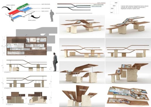 La rassegna è il risultato del concorso riservato ai giovani architetti italiani under 40, ai quali è stato chiesto di progettare fino ad un massimo di 2 Tavoli, con misure di ingombro massimo di cm 400 x cm 200, e con l'associazione di due materiali principali: il legno e la pietra di Vicenza.