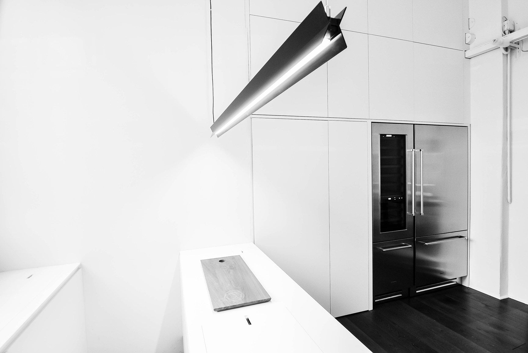 La nuova cucina, reticolato ordinato di geometrie che si integrano nell’architettura della casa, è stata pensata per conferire allo spazio un aspetto contemporaneo e pulito, di facile lettura e mai invadente, in grado di lasciare al centro dell’attenzione il ventaglio di colori dei cibi e la figura stessa del cuoco.
