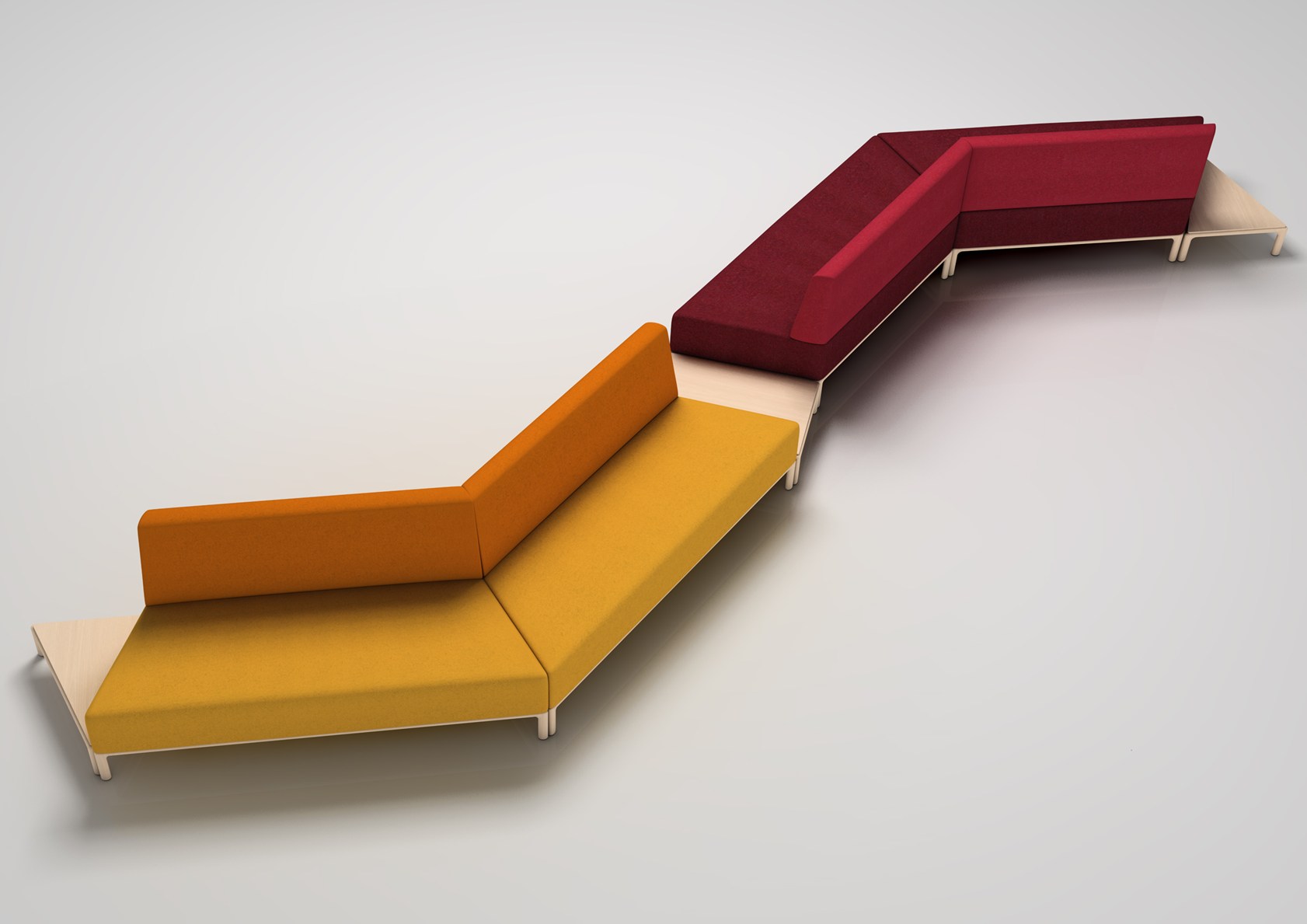 I singoli moduli possono combaciare perfettamente fra loro creando una seduta a soluzione continua o alternarsi ad ampi piani di appoggio in frassino, scelto per sottolineare anche il profilo inferiore e i piedini della seduta. Schienale e seduta sono proposti in tinta unica o accostati con colori in gradazione che creano un piacevole effetto a contrasto. Grazie alle sua versatilità e componibilità, il divano Cameo trova perfetta collocazione nelle grandi lounge così come in spazi di accoglienza più contenuti.