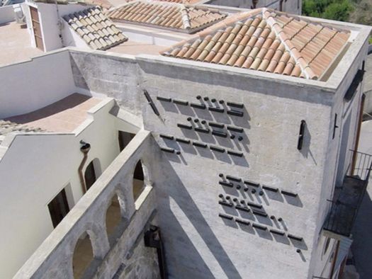 L'intervento traduce la ricerca di un nuovo valore cosmico del luogo che si riorganizza intorno al segno artistico espresso dalle grafie che compongono il Codice Morse, internazionalmente riconosciuto e storicamente utilizzato per inviare segnali. Locating Laterza si pone come Segnale d’Arte, Antenna che comunica al pubblico un invito alla consapevolezza dell’essere in un luogo.