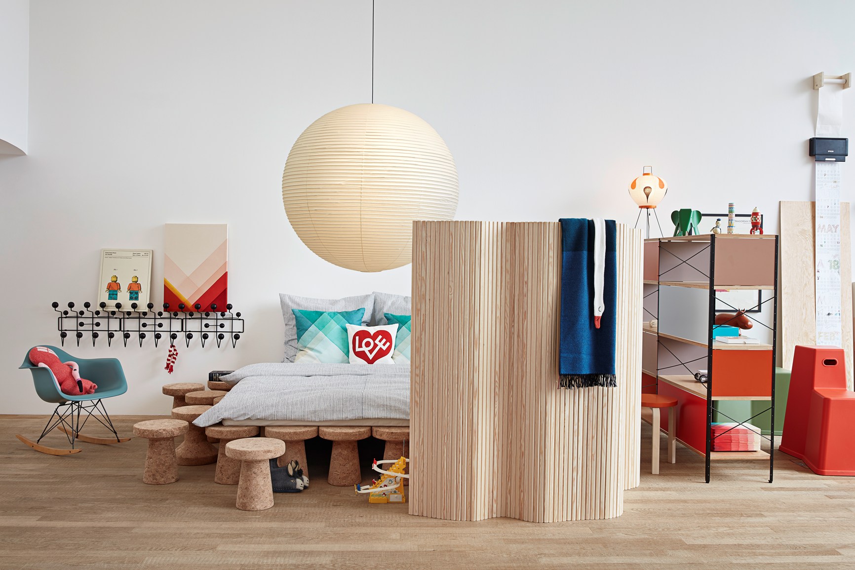 I due designer hanno immaginato di poterci vivere insieme ai loro due figli: ‘La nostra installazione si ispira a una famiglia giovane, indaffarata e creativa. Volevamo dimostrare come uno spazio possa funzionare altrettanto perfettamente sia per i genitori che per i figli, sia per il lavoro che per il gioco.’