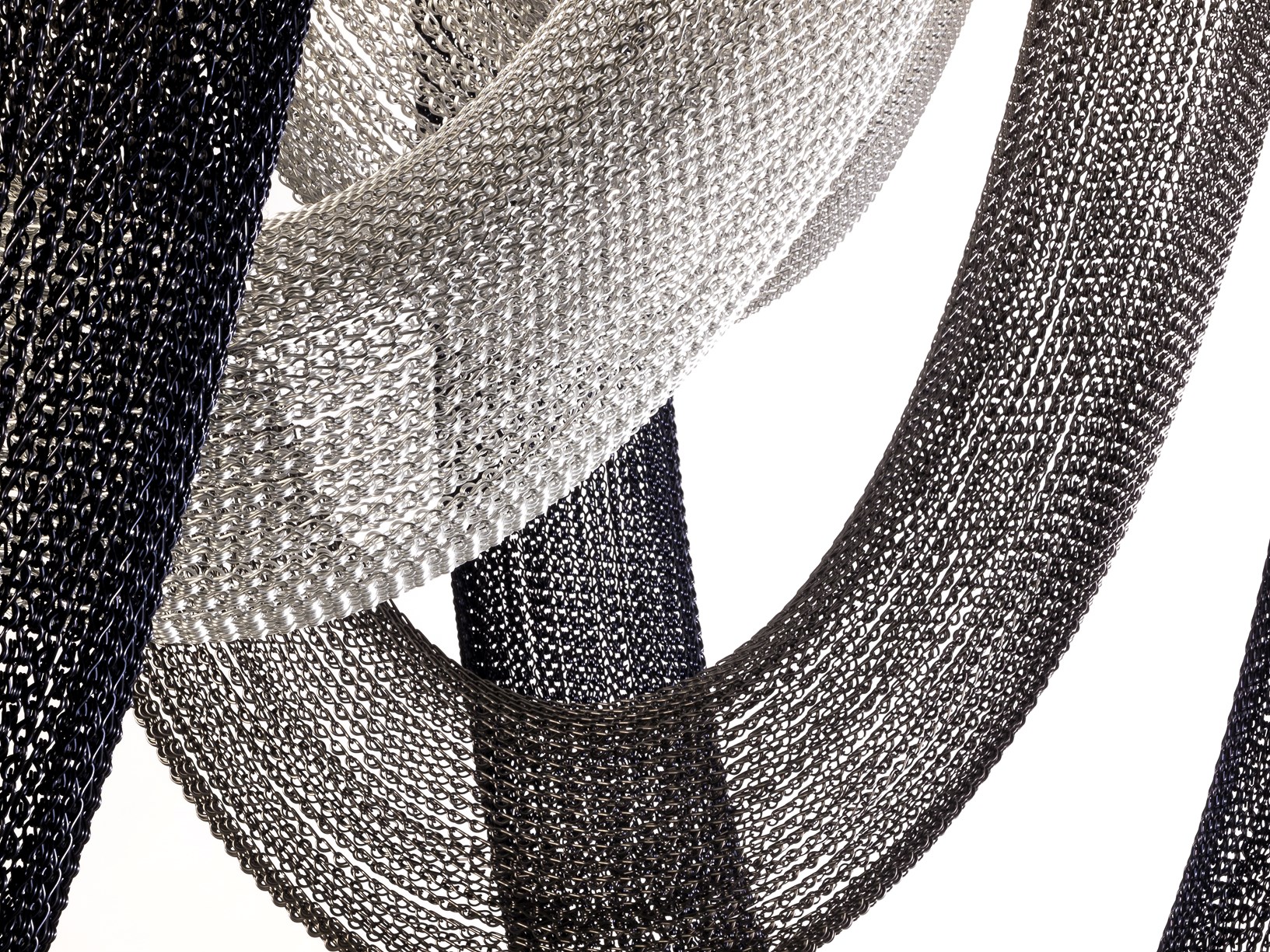 L'assemblaggio degli elementi metallici che compongono le catene viene eseguito in modo completamente artigianale attraverso un lavoro delicato e meticoloso. Quantità e altezza delle cascate, combinazione di colori e distanza tra i faretti rendono ogni lampada unica e personalizzabile.