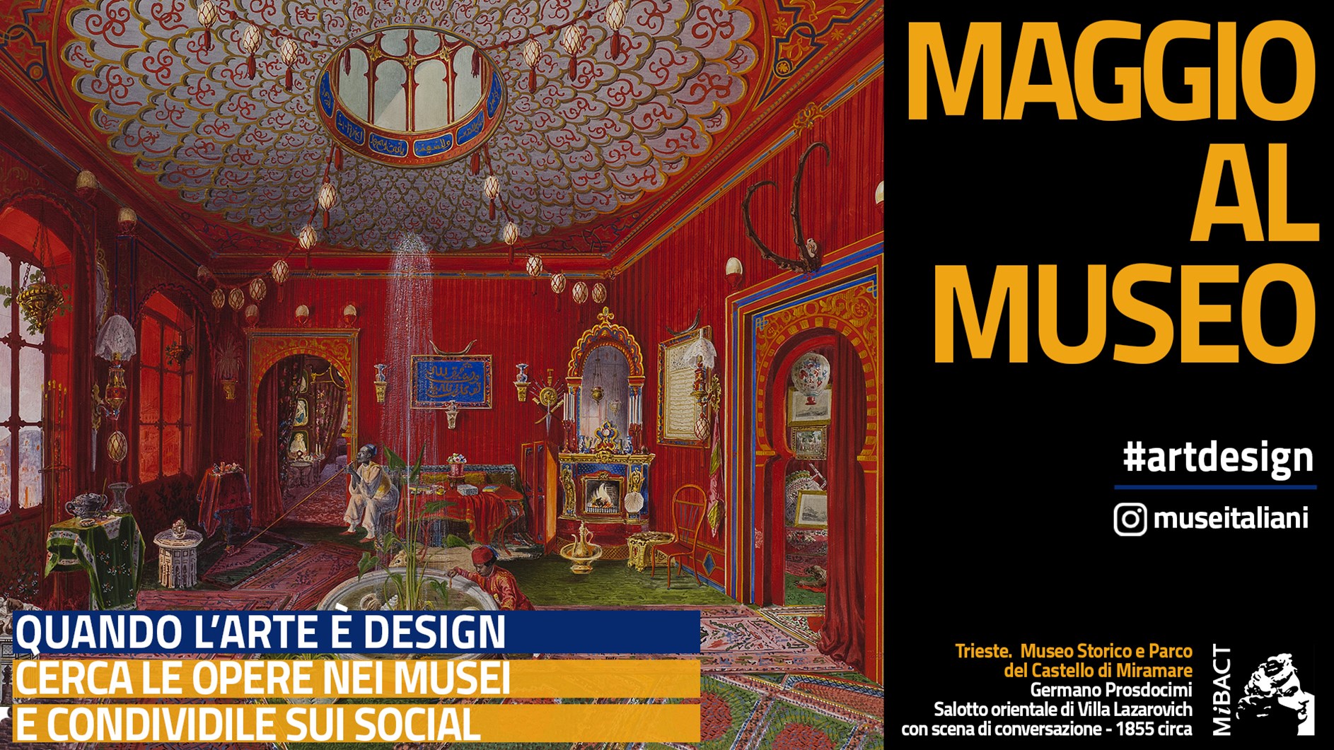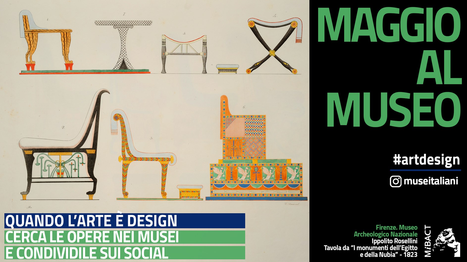 07/05/2018 - Il MiBACT - Ministero dei beni e delle attività culturali e del turismo lancia sui social il tema del mese di maggio: i visitatori dei #museitaliani postano e condividono il #artdesign.
