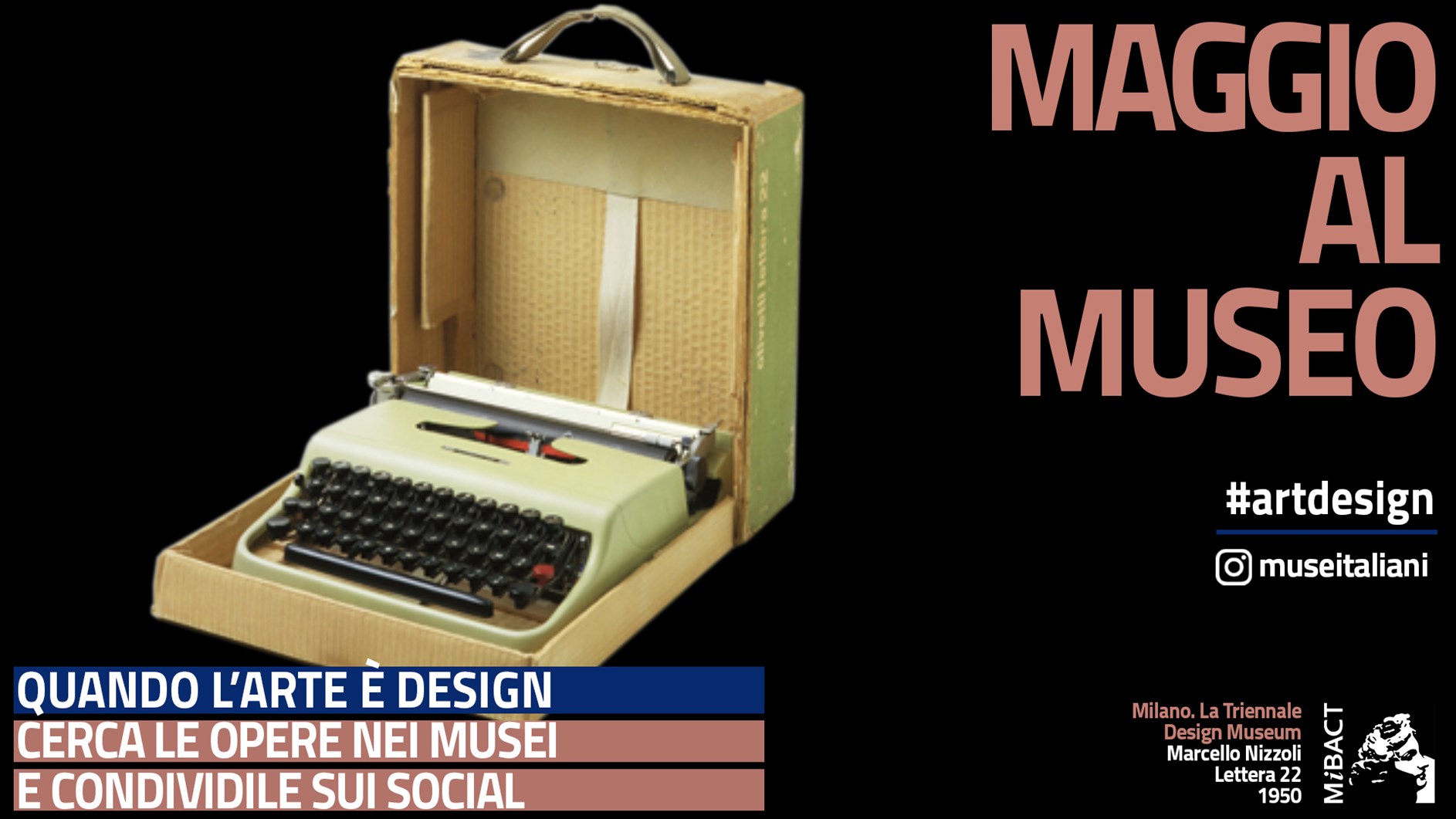 La Triennale di Milano, della cui Fondazione il Ministero dei beni e delle attività culturali e del turismo è uno dei soci pubblici, è certo il più importante museo italiano dedicato al design: trasformandosi ogni anno, modificando temi e allestimenti, testimonia la storia, la ricchezza e l’innovazione della progettazione, quel percorso che, attraverso la sperimentazione, ha reso le creazioni italiane famose e inconfondibili in tutto il mondo. Ed è al design che il MiBACT dedica la campagna di comunicazione del mese di maggio, lanciando attraverso i propri account social, in particolare l’account Instagram @museitaliani, una nuova sfida per i visitatori degli oltre 450 musei, parchi archeologici e luoghi della cultura nazionali: fotografare e condividere con l’hashtag #artdesign tutti gli oggetti la cui forma rappresenta sintesi di funzionalità, tecnica ed estetica ben prima dell’avvento della produzione industriale.