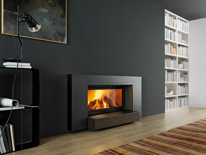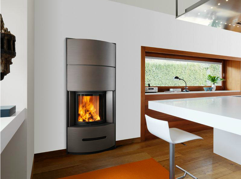 Il rivestimento lineare, la geometria delle forme rendono la stufa in perfetta armonia le tendenze dell’arredare moderno.