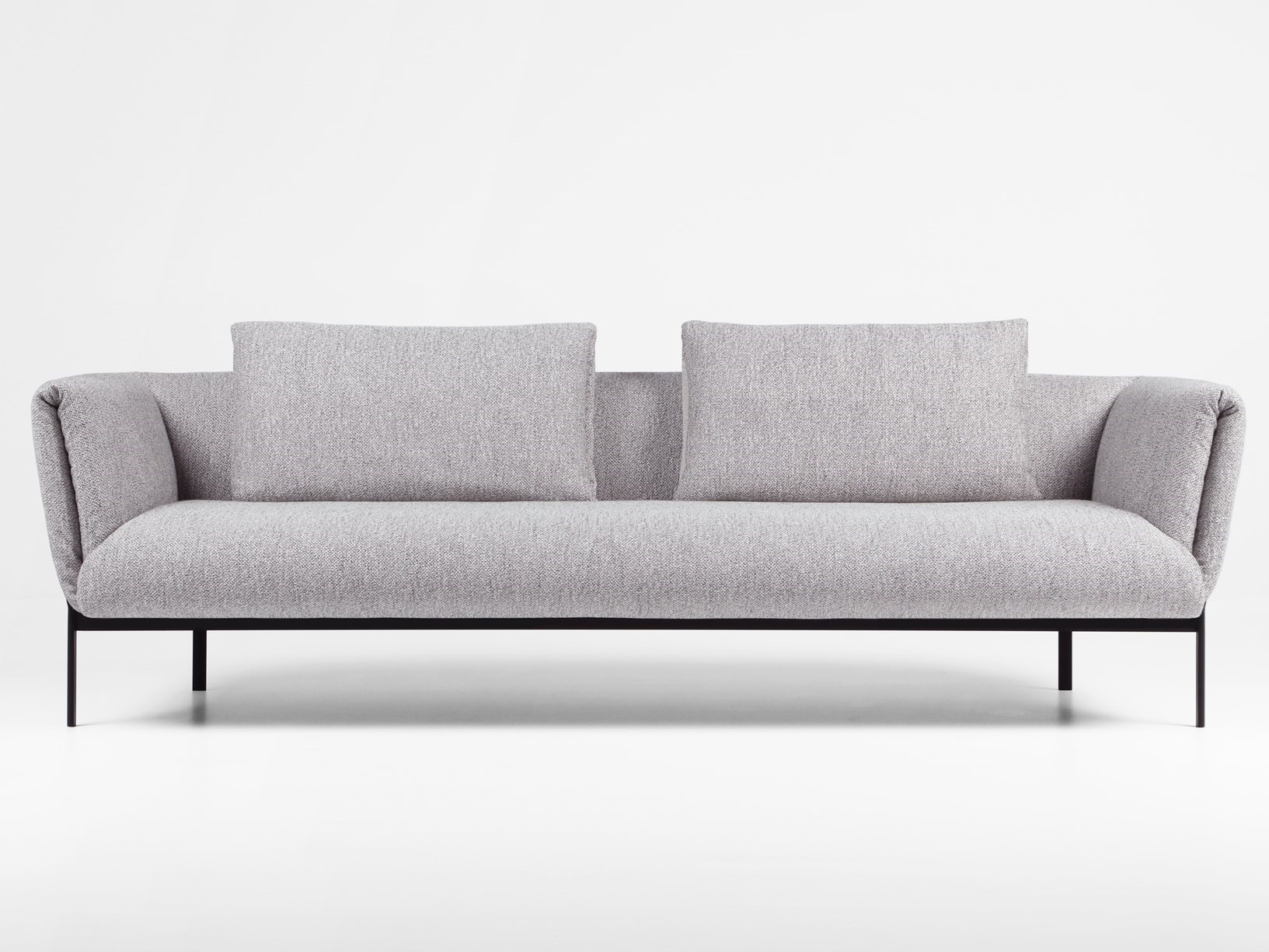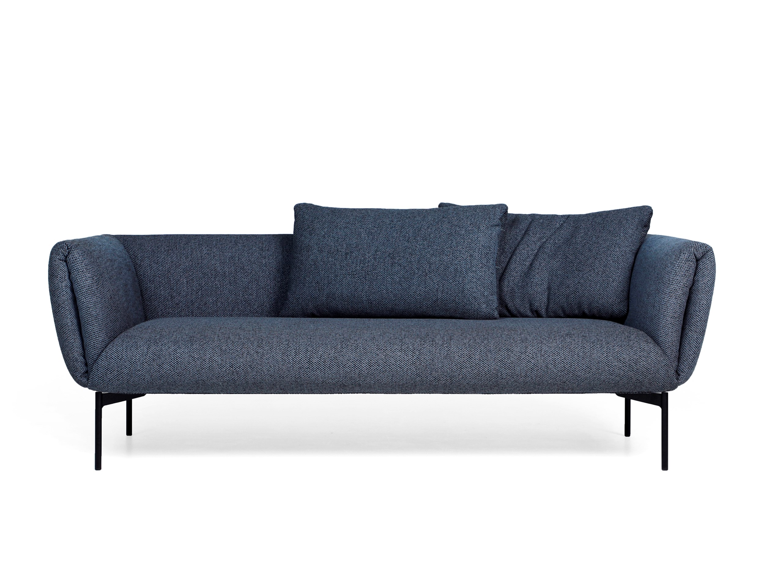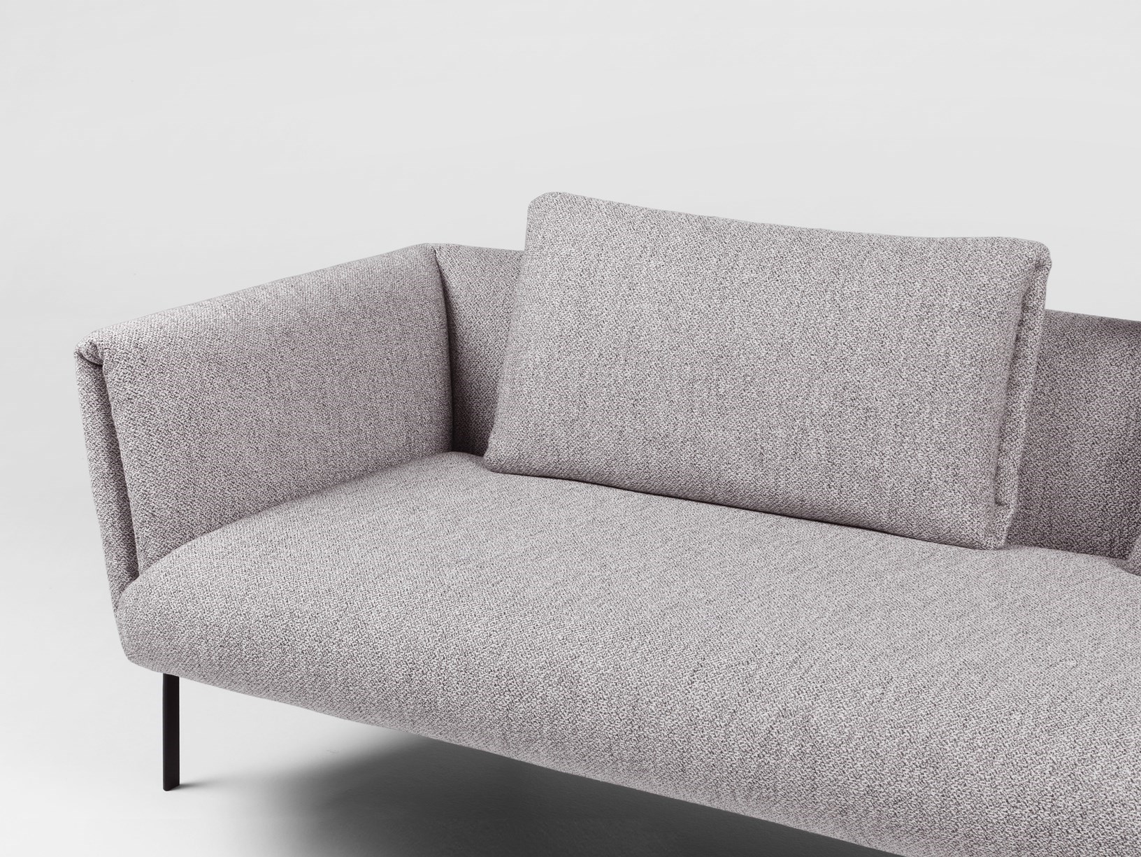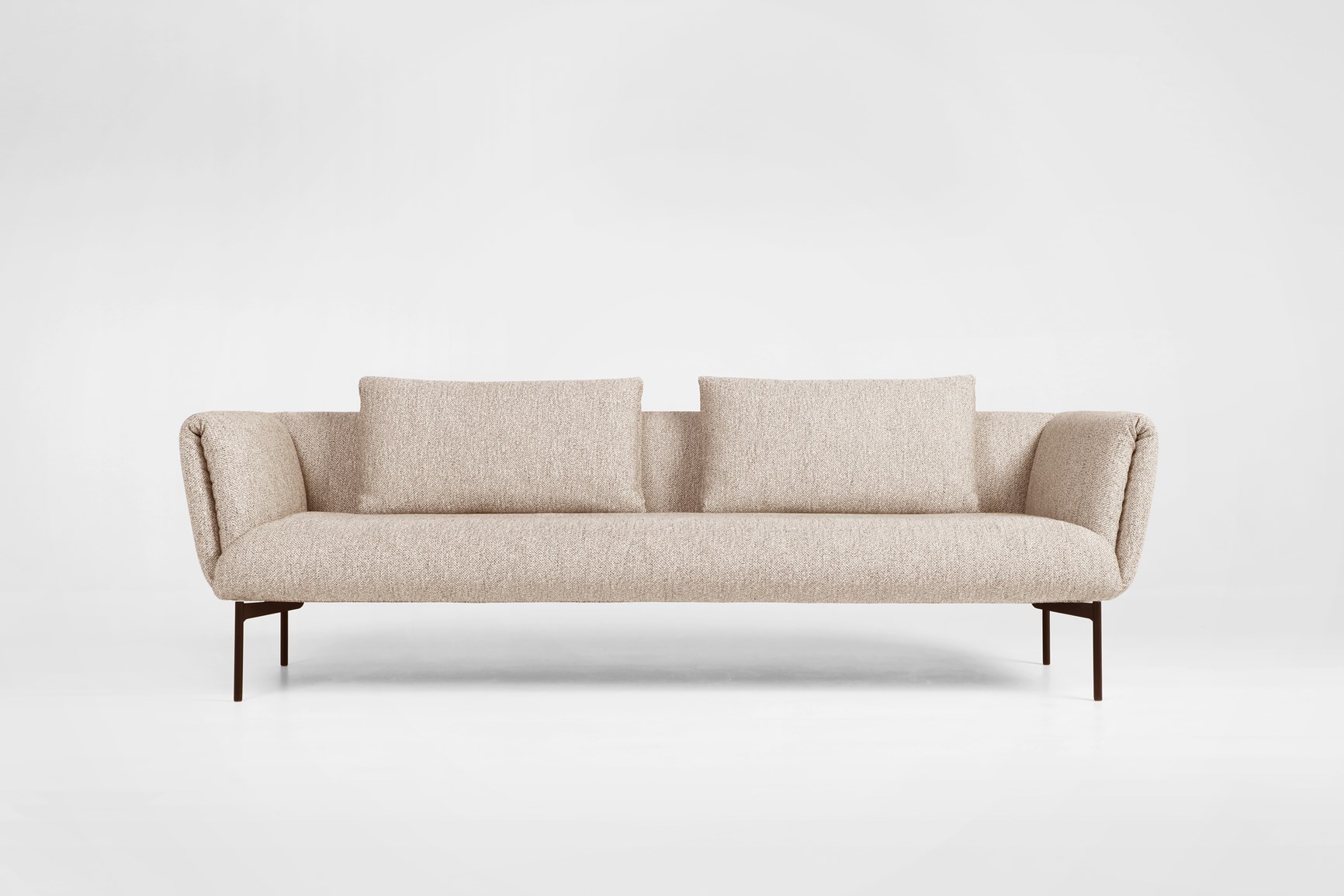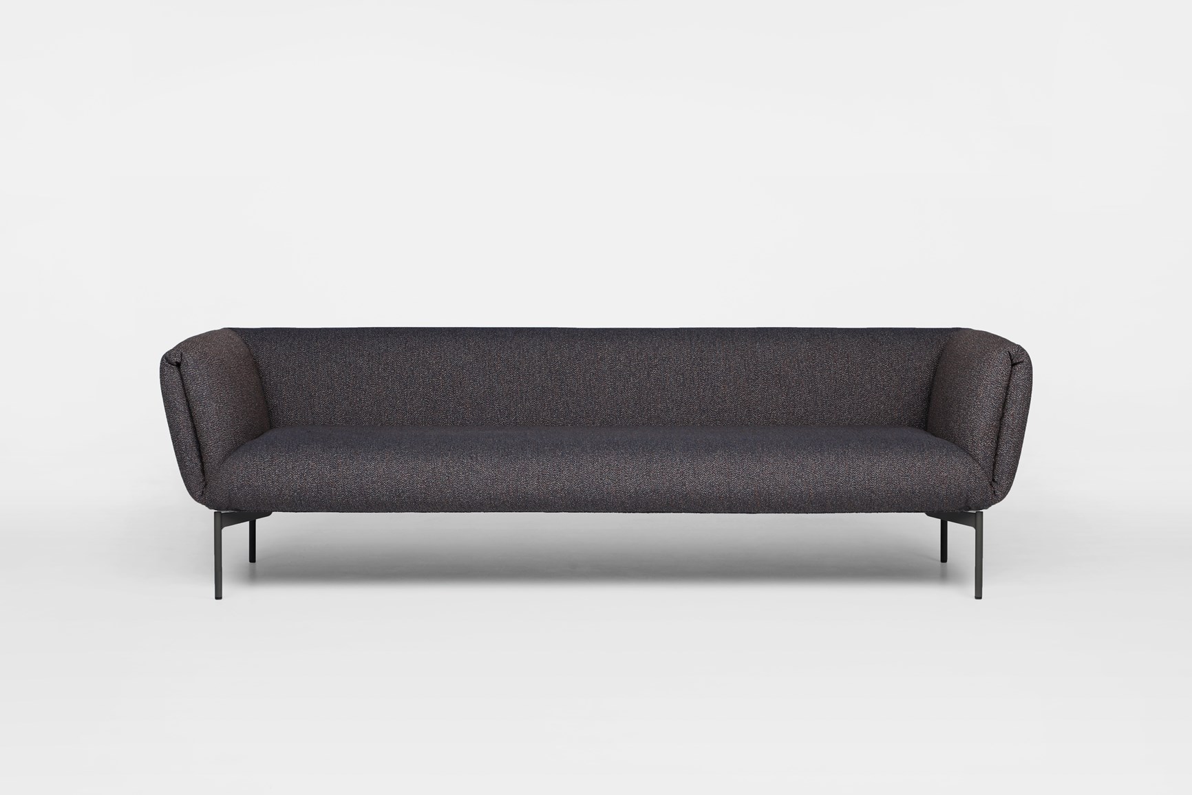Per la sua prima collaborazione con Prostoria, la designer tedesca Meike Harde firma la collezione di imbottiti Impression, un progetto essenziale che rivela una meticolosa cura del dettaglio. Le linee curve e minimal del divano creano una delicata piega sul bracciolo che esprime comfort e morbidezza. Le gambe sottilissime si trasformano in solido sostegno nella parte posteriore della seduta.