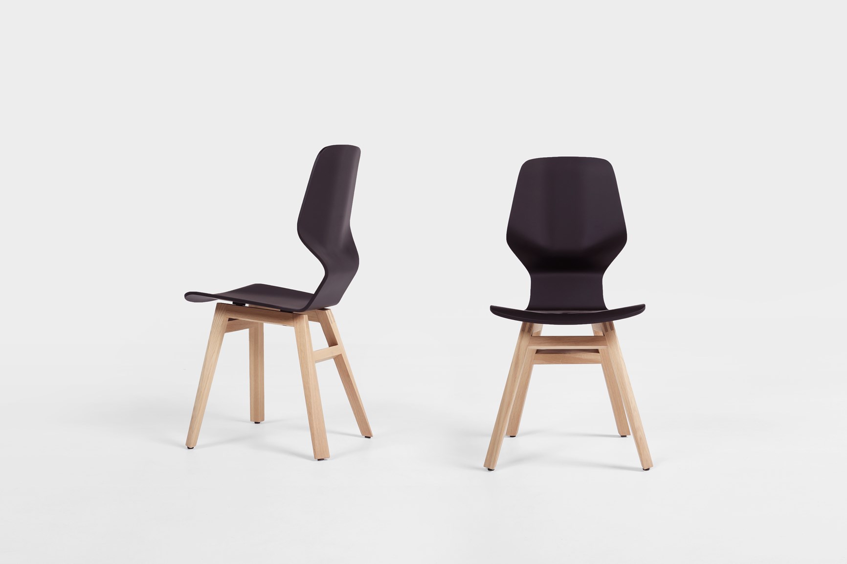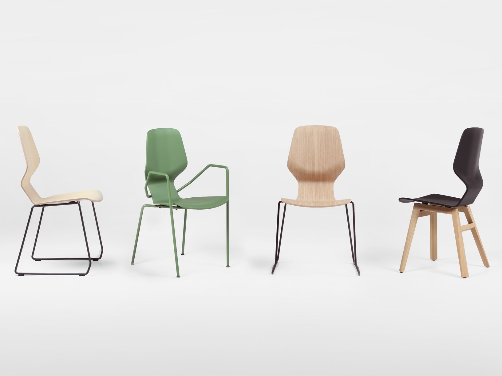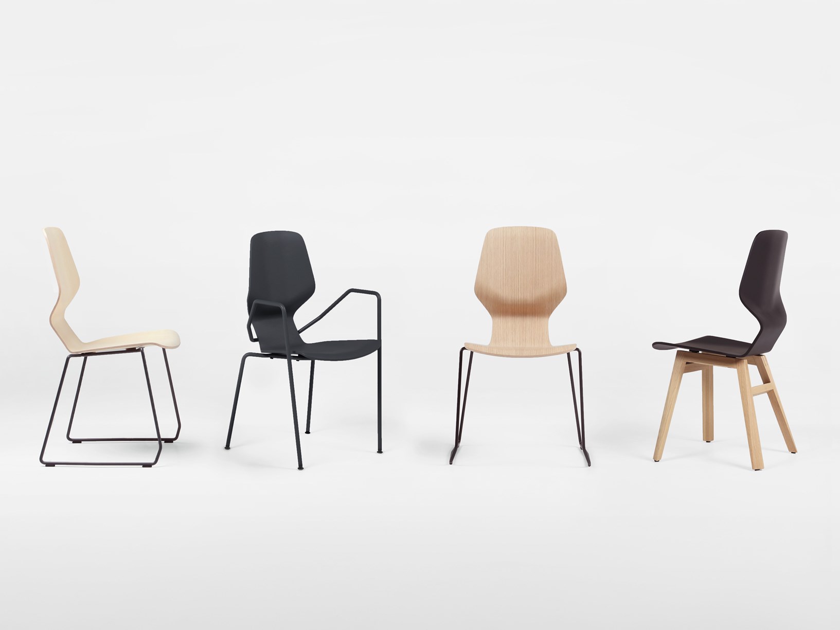 Lo studio Numen/ForUse, già autore di numerosi pezzi Prostoria come Segment e Polygon - tra i best seller del brand - presenta quest'anno la collezione Oblikant. La seduta Oblikant riprende il caratteristico profilo ad S della sedia imbottita Oblique già a catalogo, ma si differenzia per tecnologia di realizzazione e destinazione d'uso. La geometria della scocca fortemente curvata offre ergonomia e comfort per qualsiasi versione della seduta. La scocca è realizzata in compensato stampato in 2D, combinato con 6 diverse tipologie di gambe in acciaio, di cui 4 impilabili e una base in legno massello.