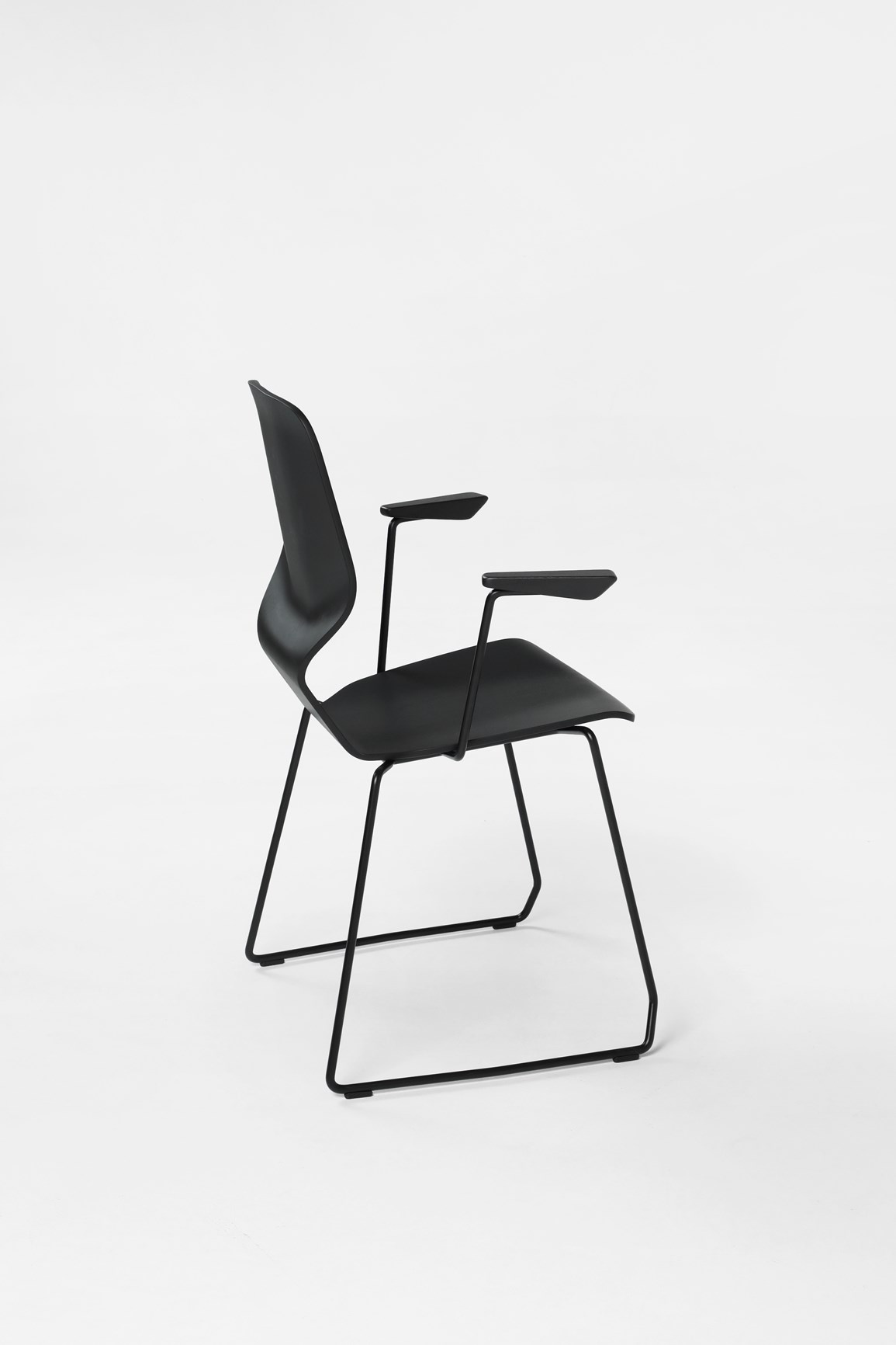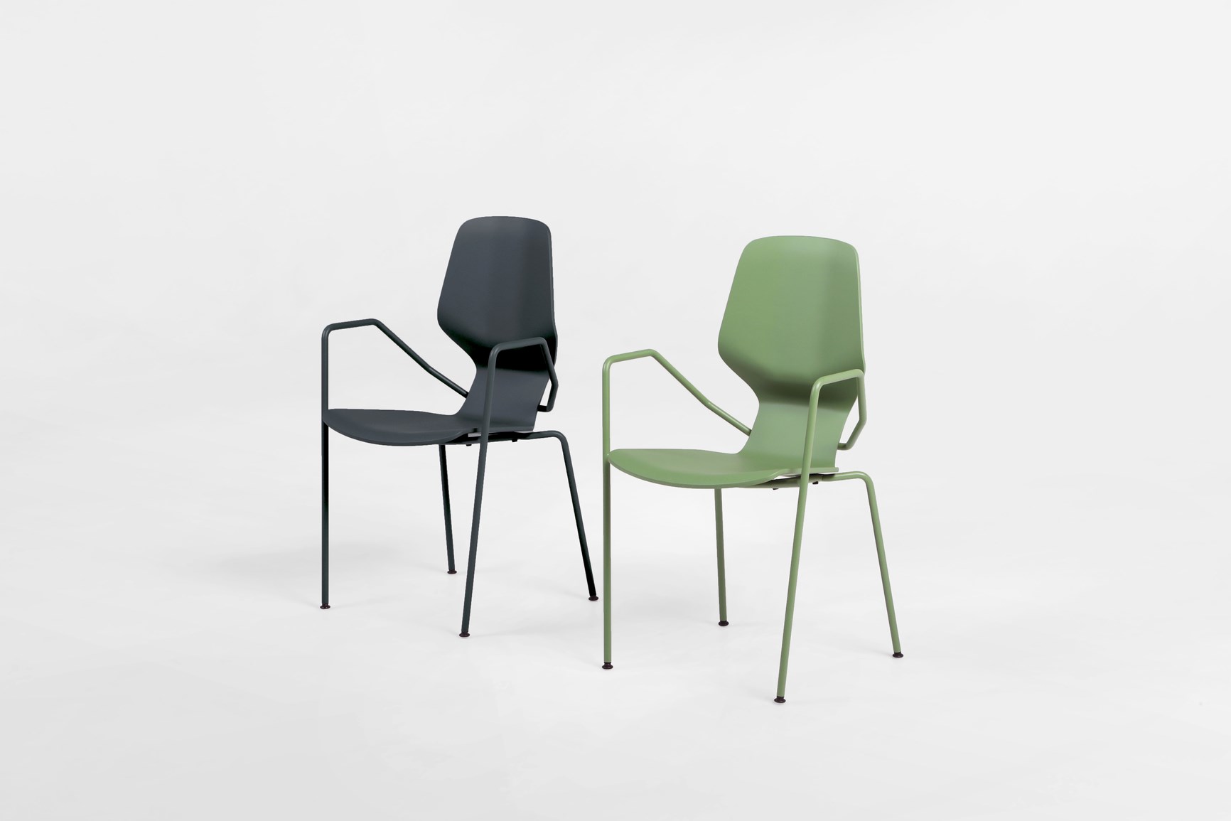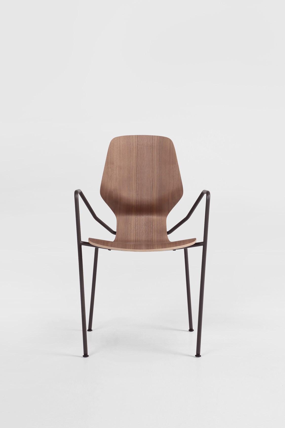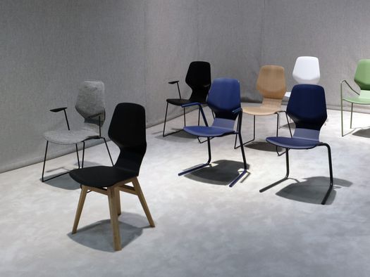 Lo studio Numen/ForUse, già autore di numerosi pezzi Prostoria come Segment e Polygon - tra i best seller del brand - presenta quest'anno la collezione Oblikant. La seduta Oblikant riprende il caratteristico profilo ad S della sedia imbottita Oblique già a catalogo, ma si differenzia per tecnologia di realizzazione e destinazione d'uso. La geometria della scocca fortemente curvata offre ergonomia e comfort per qualsiasi versione della seduta. La scocca è realizzata in compensato stampato in 2D, combinato con 6 diverse tipologie di gambe in acciaio, di cui 4 impilabili e una base in legno massello.