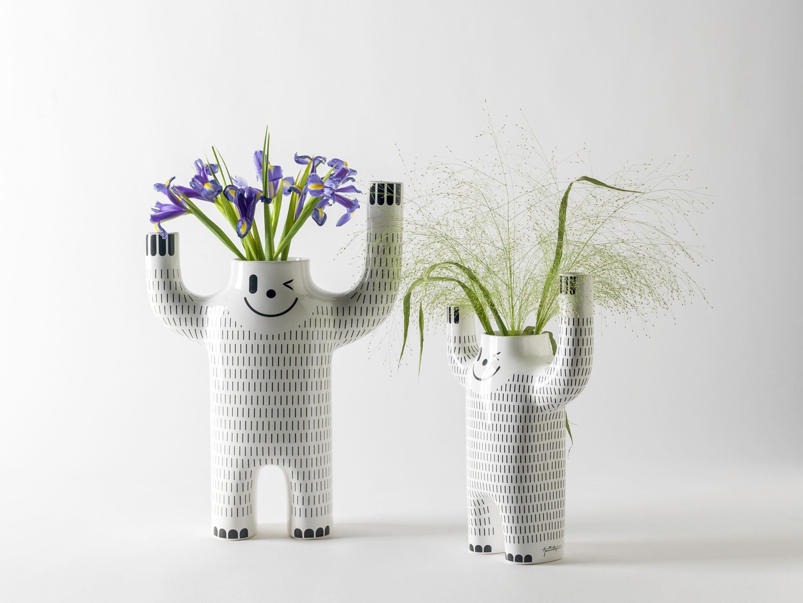Il vaso in ceramica Happy Susto - che in spagnolo significa 'spavento' - viene rivisitato con il progetto Happy Yeti. 'Trovo molto divertente la storia dello Yeti, lo spaventoso mostro che vive al Polo Nord. Con Happy Yeti ho trasformato questo buffo personaggio in vaso da personalizzare con fiori e piante che diventano capelli'.