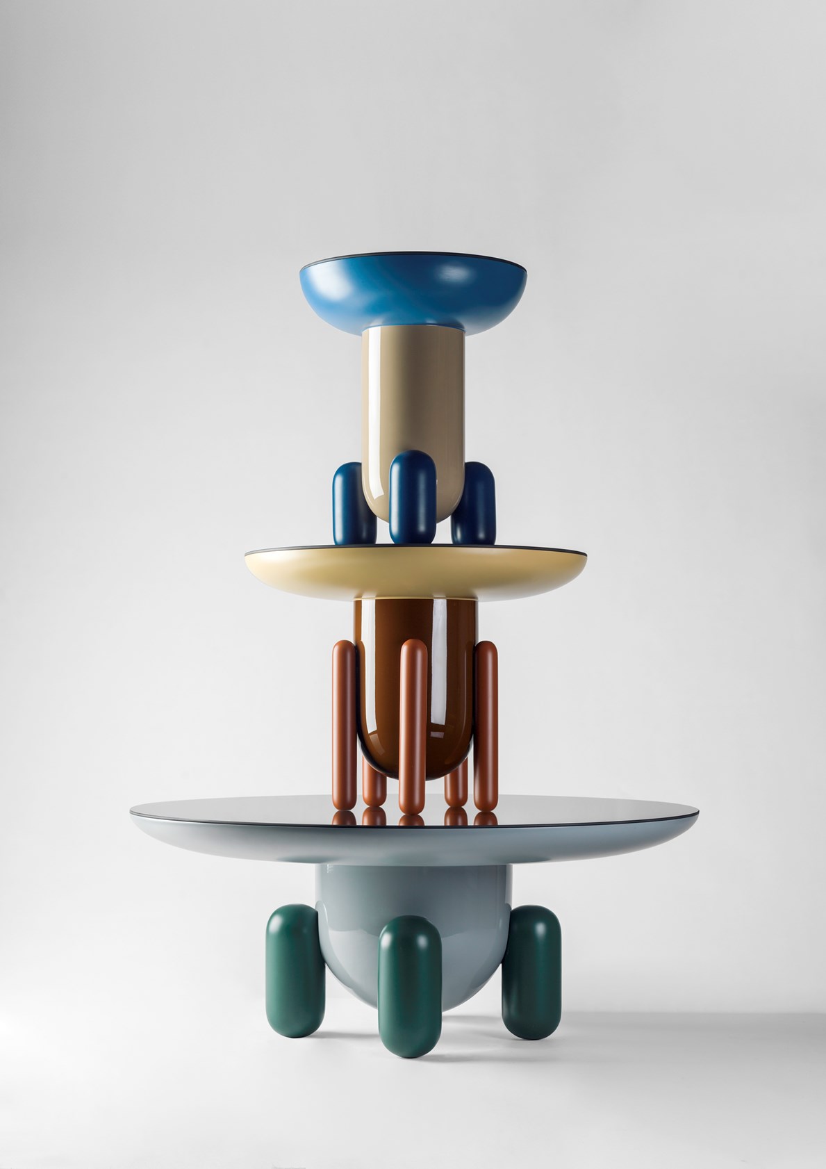 Explorer è una collezione sfacciatamente decorativa e giocosa. Declinata in tre diversi tavolini, Explorer ricorda le jelly-beans, le caramelle gommose amate dai bambini in USA. Gambe, struttura e piano d'appoggio che compongono il tavolino, accostano forme morbide e volumi puri, colori decisi e nuance pastello, finiture opache e lucide.