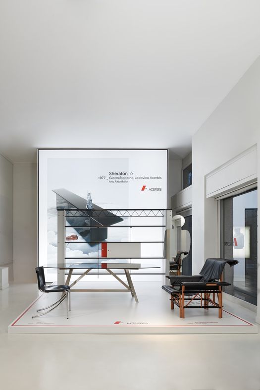 La produzione Acerbis ha trovato nuova dimora nel cuore della capitale del design all’interno del flagship store MDF Italia, che da fine ottobre ospita entrambe le collezioni negli oltre 600 mq di esposizione, di cui 250 mq dedicati al nuovo marchio. All’ingresso dello showroom una mostra temporanea di prodotti originali dell’archivio storico dell’azienda, segno tangibile di questa nuova presenza, incuriosisce ed affascina il pubblico ricordando la storicità ed il valore del brand attraverso il design iconico di alcuni progetti presenti in alcuni tra i più importanti musei e mostre di design del mondo. Tra questi: “Solemio” (1983) mensola luminosa con specchio rotante e “Brooklyn” (1977) scaffalatura a ponte che si caratterizza per la trave reticolare lanciata tra due piloni con ripiani sospesi agli esili tiranti d’acciaio, entrambi progettati da Lodovico Acerbis & Giotto Stoppino.