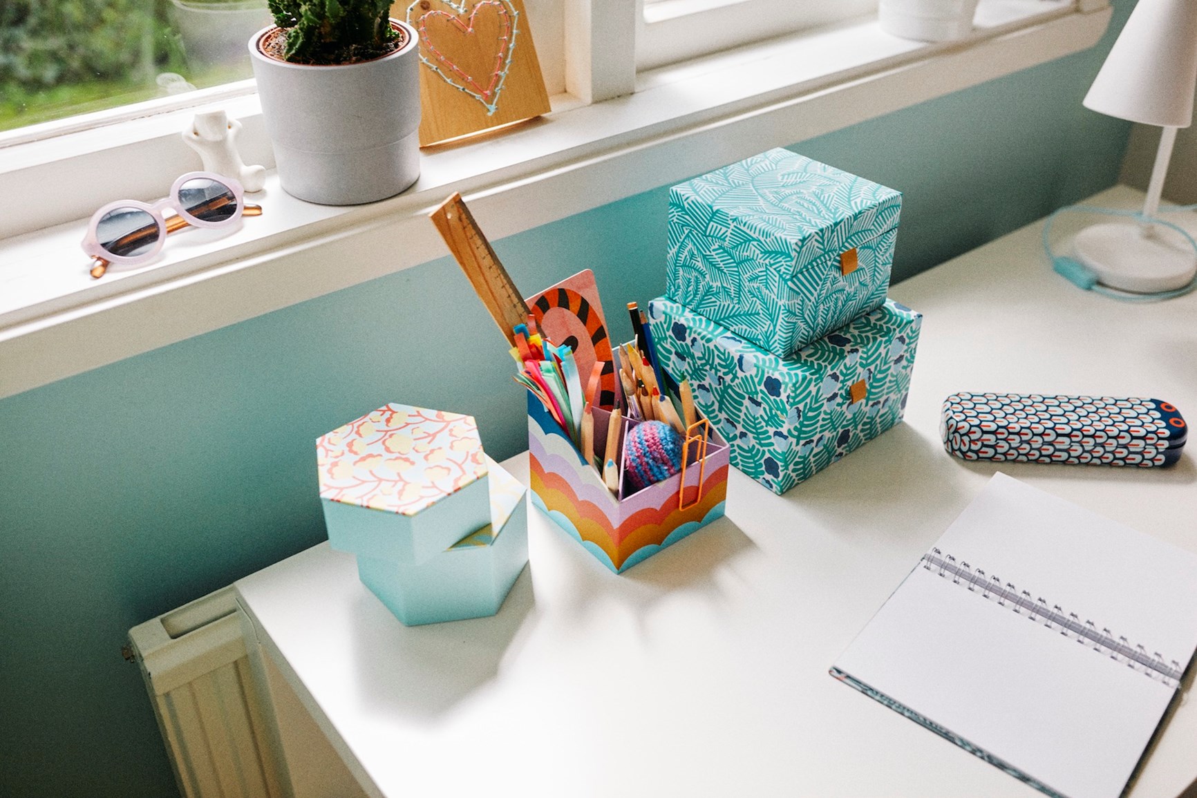 Se l’ufficio è in soggiorno può essere utile custodire il proprio materiale di lavoro in pratici porta-documenti, per differenziarlo da altro tipo di documenti. Si può scegliere lo stile più adatto al proprio ambiente: dal più essenziale come quello delle classiche scatole KVARNVIK dallo stile retro, rivestite in carta tessuta e con un romantico porta etichetta da aggiornare all’occorrenza, alle nuove accese fantasie botaniche della serie di scatole, porta-riviste e porta-oggetti FJÄLLA, fino alle allegre fantasie multi-colori della serie LANKMOJ, TJENA e ILLBATTING adatte anche alle camerette dei più piccoli.