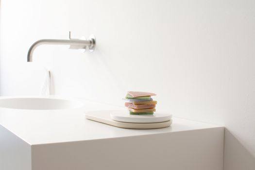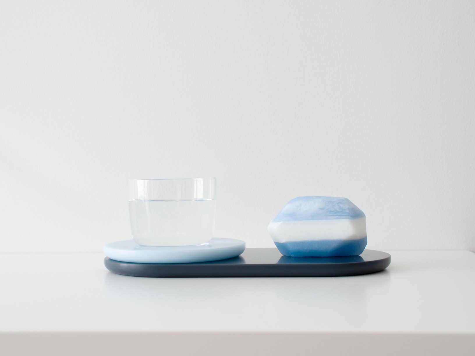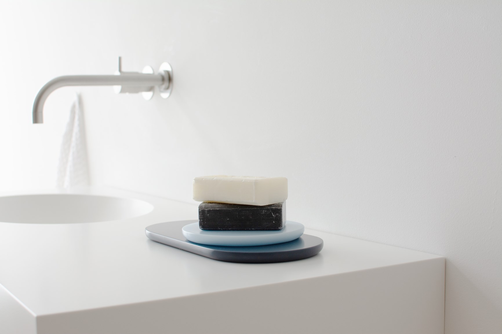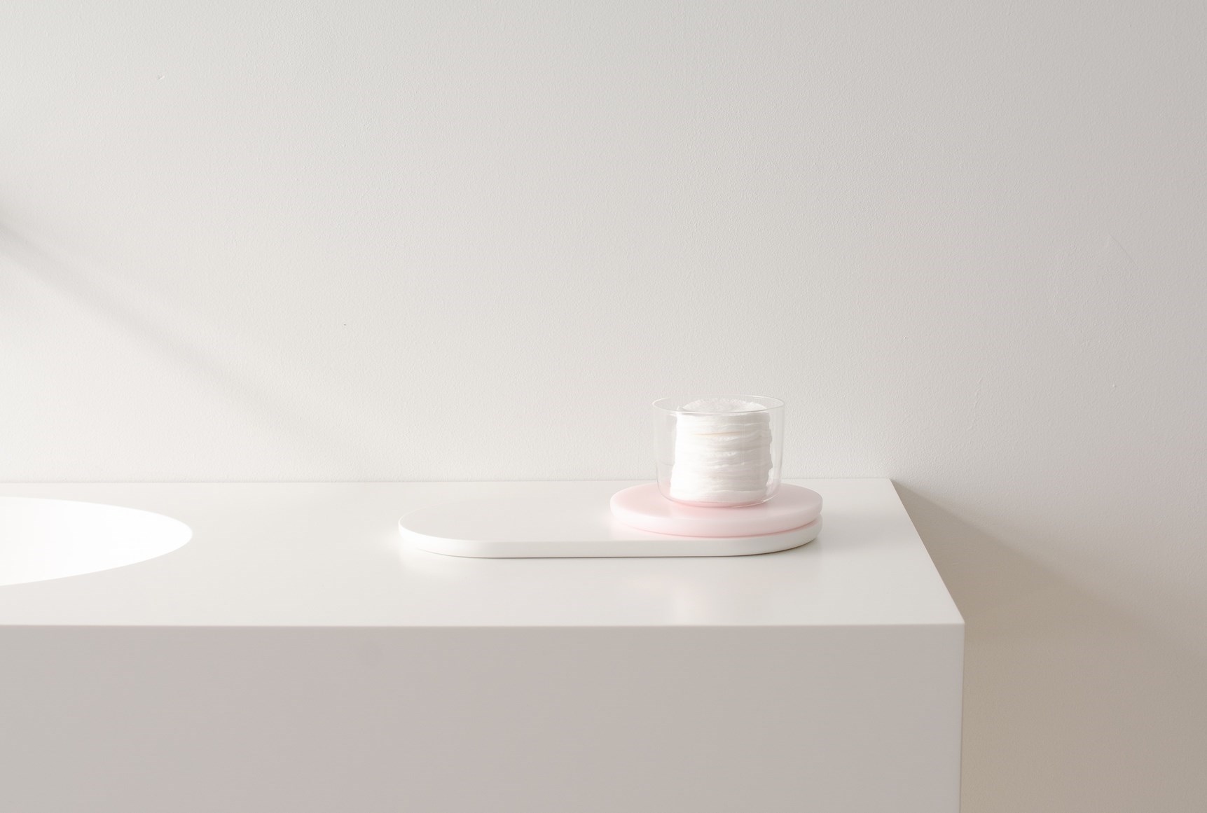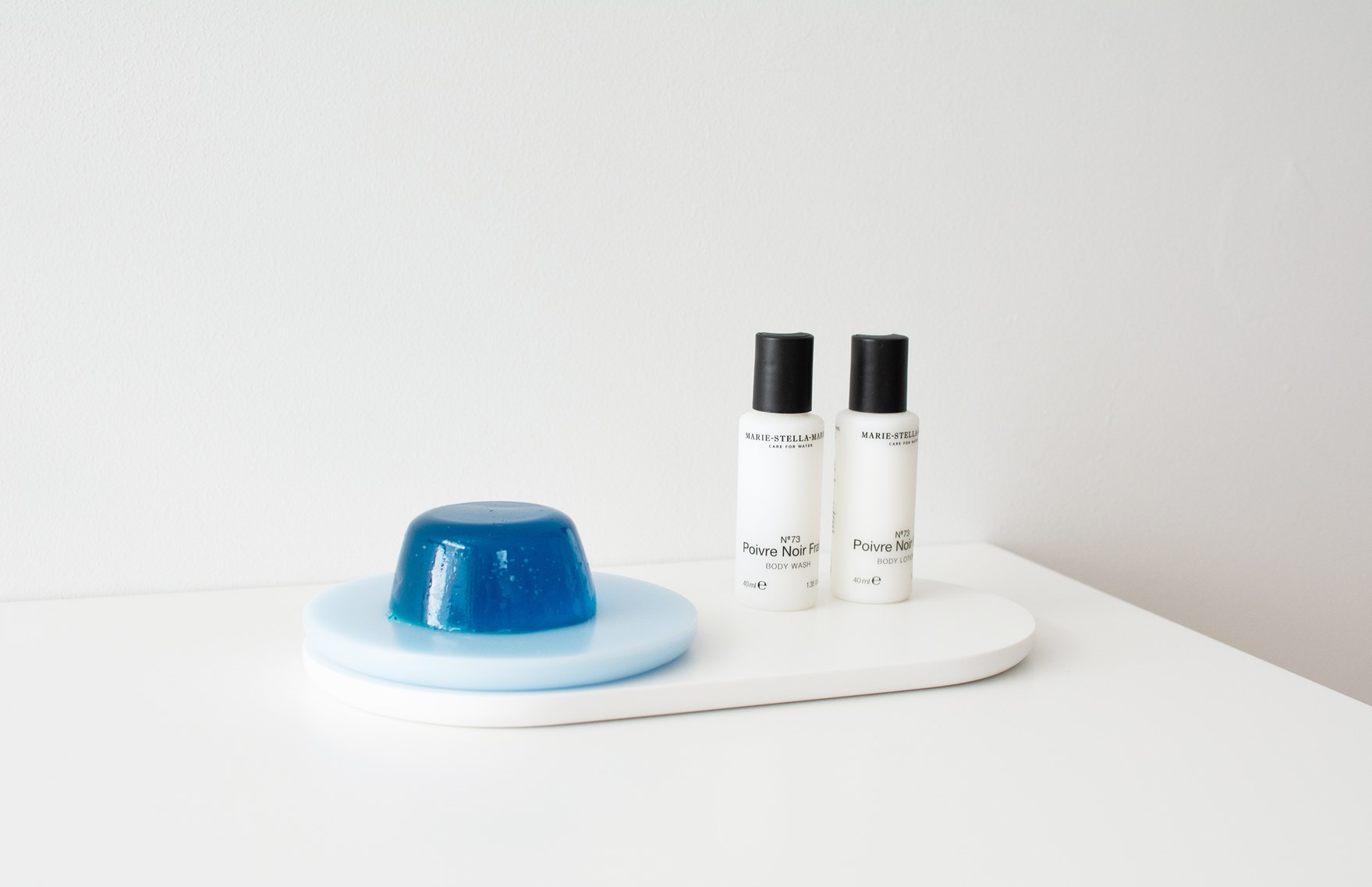 La linea è stata ispirata dagli espositori delle stanze da bagno degli hotel per la presentazione di piccoli kit per l’igiene personale, come flaconcini di shampoo e bagnoschiuma forniti dalle catene alberghiere per i propri ospiti. Il design minimale e le tonalità pastello donano un tocco estroso a un elemento considerato spesso ‘impersonale’.