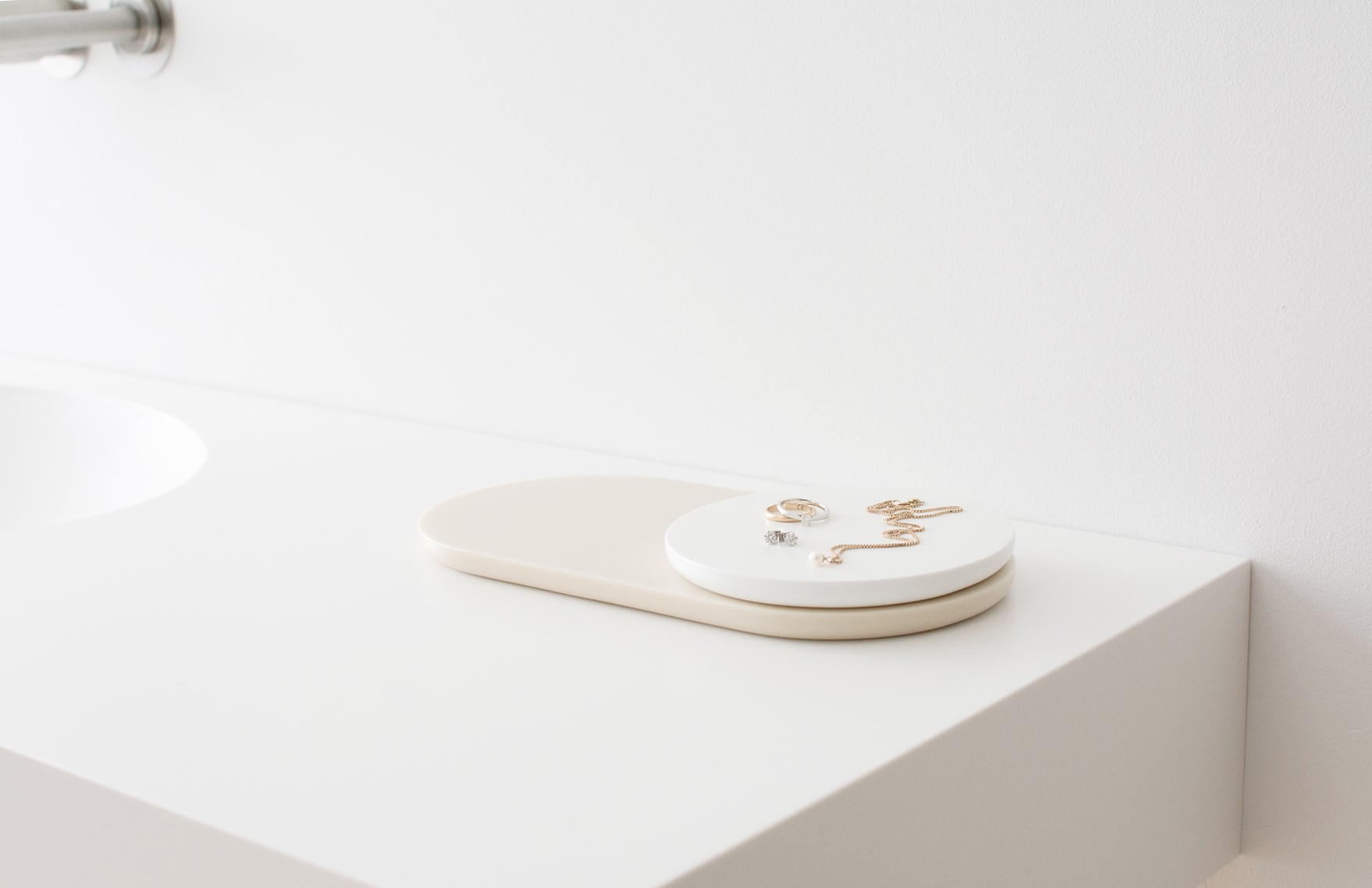 04/05/2020 - Stages è la nuova collezione di accessori per il bagno disegnata da Marike Andeweg per il brand olandese Not Only White e disponibile in una vasta gamma di colori HI-MACS®.