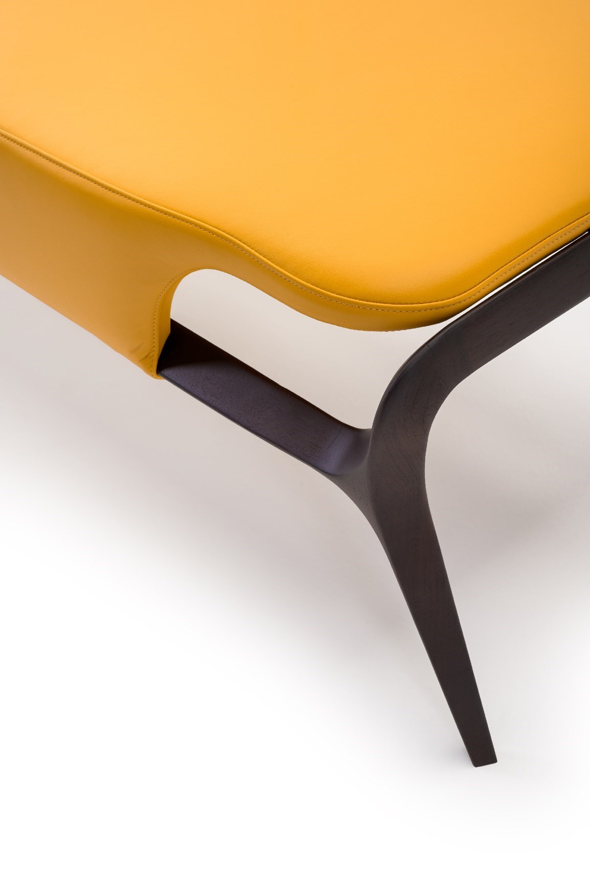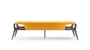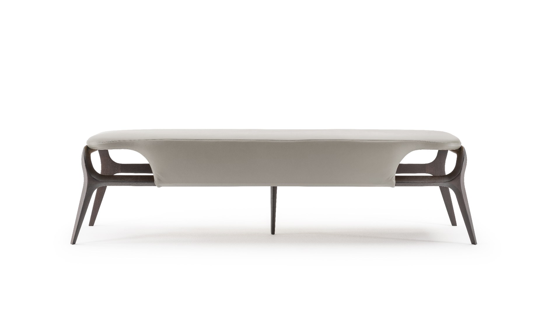 Per la zona notte, invece, la panchetta e il pouf Vine, firmati da Frank Jiang. La prima colpisce per il design sinuoso della struttura in legno, il secondo per comfort e funzionalità. Dalle forme morbide e circolari, il pouf è infatti dotato di un’ampia apertura frontale utile non solo ad aumentare l’ergonomia della seduta stessa, ma anche, eventualmente, a riporre degli oggetti.