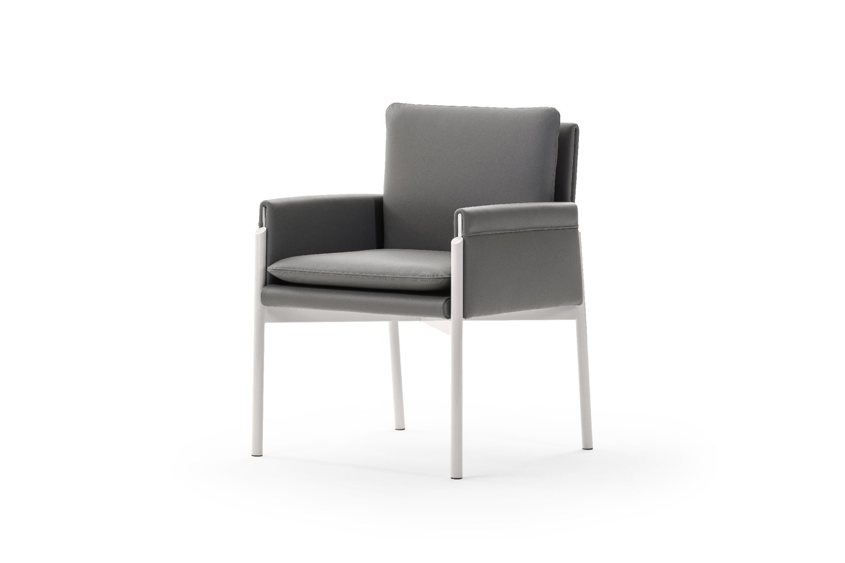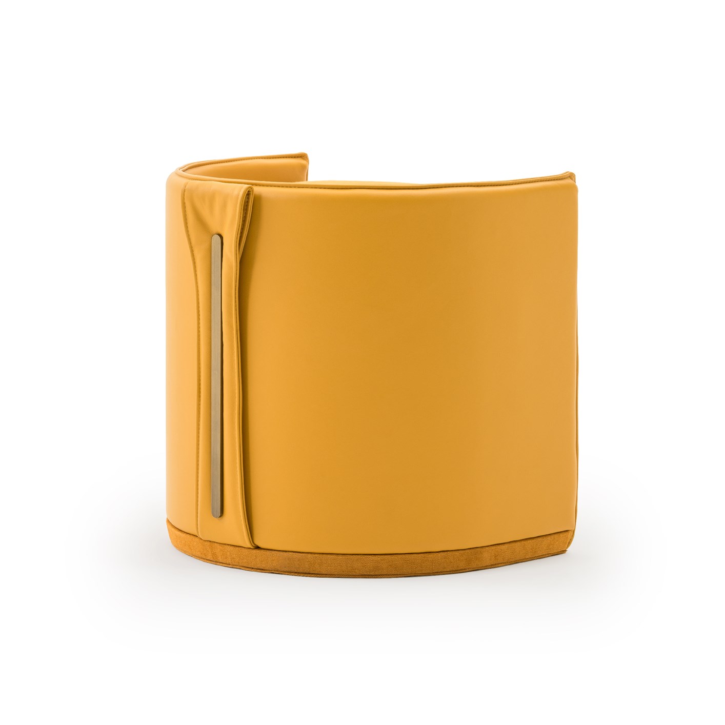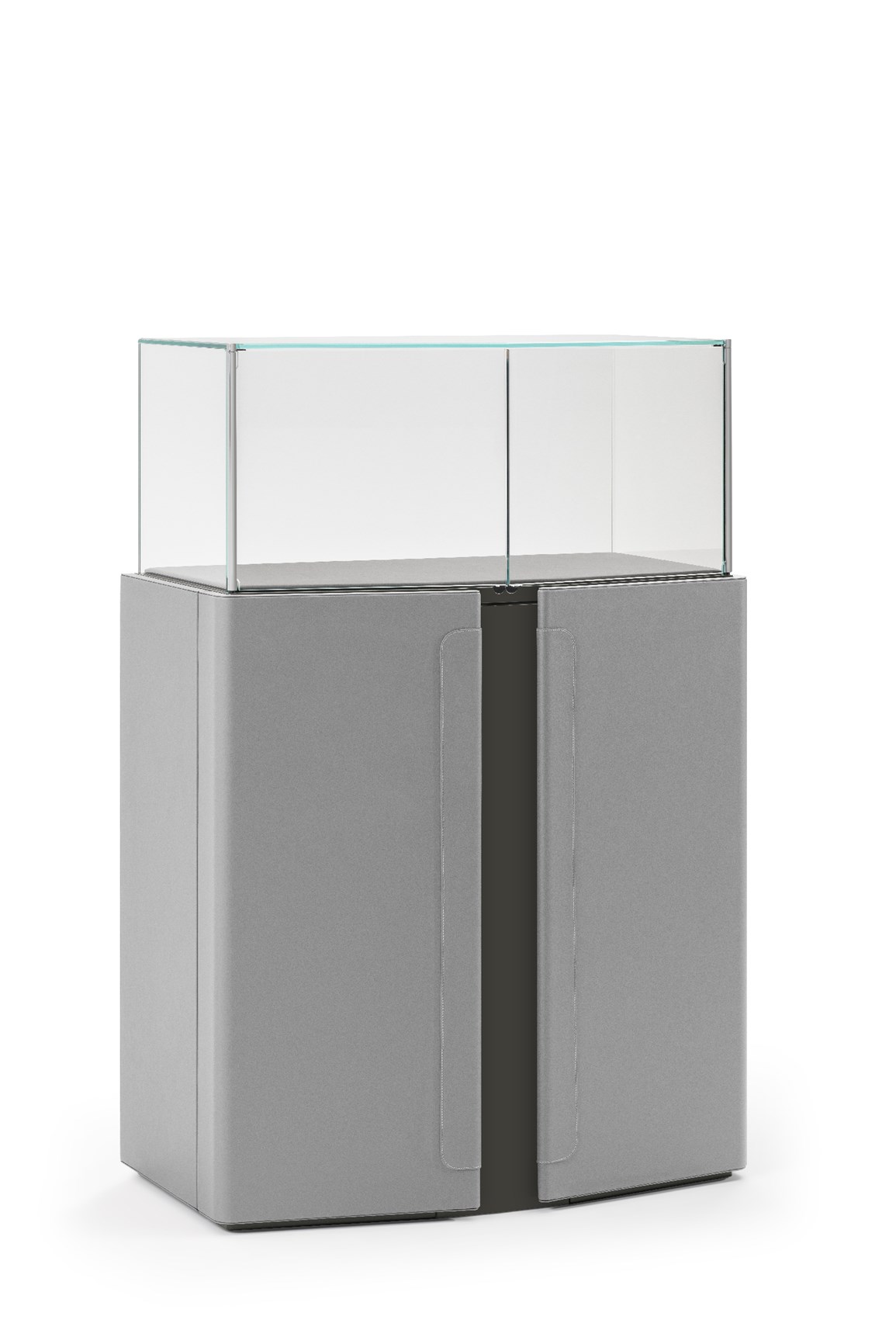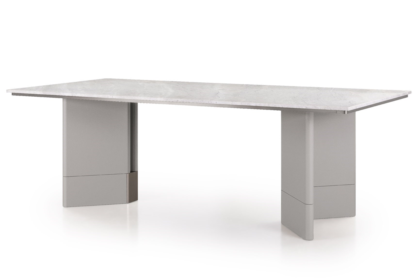 Disegnati da Andrea Bonini, ecco gli elementi per le zone dining e living. Il tavolo Zero, in cui le sfumature del piano in marmo si armonizzano perfettamente con le gambe ad ala rivestite in pelle grigia e impreziosite da dettagli in metallo; le sedie Zenit, caratterizzate da una struttura sottile e contemporanea, proposte in varie tonalità di grigio e di giallo abbinabili tra loro, e la vetrina della stessa collezione, con le sue ante avvolgenti, rivestite in pelle, completata da una leggera ‘teca’ in vetro.