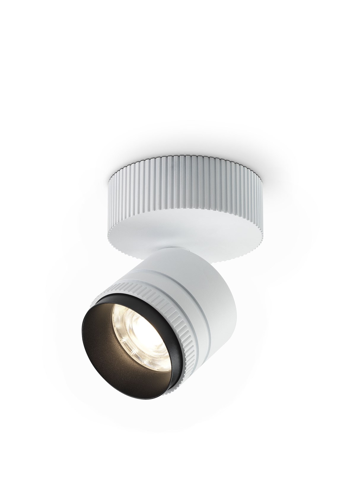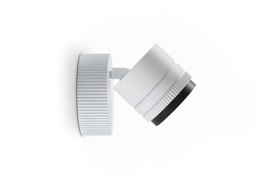 Iride è disponibile in due diversi metodi di fissaggio: versione track, su binari elettrificati trifase oppure a basetta circolare montata a soffitto o a parete; quest’ultima soluzione offre ampie possibilità di regolazione grazie al movimento su doppio asse di rotazione.