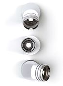 La collezione si compone di diverse dimensioni ed elementi. Il corpo, realizzato in pressofusione, è personalizzabile e disponibile su richiesta in diverse colorazioni da abbinare allo snooter in finitura cromo, nero e bronzo. Completano la gamma molti accessori e filtri che arricchiscono e potenziano le possibilità illuminotecniche del prodotto. L’effetto di “luce arretrata” genera un’emissione regolabile che garantisce un maggior comfort visivo e antiabbagliamento.