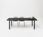 La struttura portante del tavolo LINE-UP è realizzata in acciaio. Le quattro gambe collegate a portale si innestano sullo spessore del piano con un preciso taglio a 45 gradi. Il piano realizzato in materiale tecnico stratificato con doppia lamina di alluminio garantisce elevate prestazioni fino a dimensioni di cm 300. Elevate caratteristiche di resistenza al graffio e di resistenza alle alte temperature rendono LINE-UP ideale sia negli spazi domestici che quelli di lavoro.
