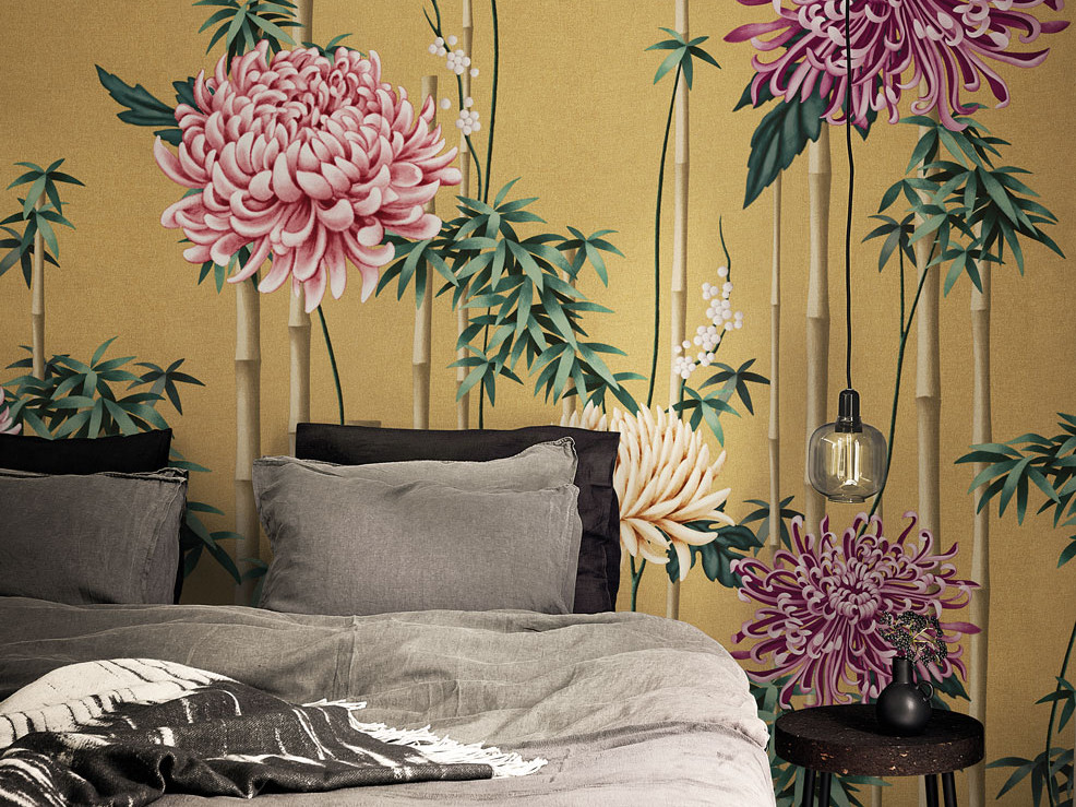 Dai ciliegi in fiore ai giardini zen del XIX secolo, la nuova Capsule Collection di carte da parati Kimono evoca la tradizionale iconografia giapponese