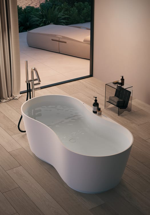 Il suo design dalle linee morbide e avvolgenti non è solo estetico ma anche ergonomico, progettato per accogliere il corpo, ottimizzare gli spazi e facilitare l'installazione.