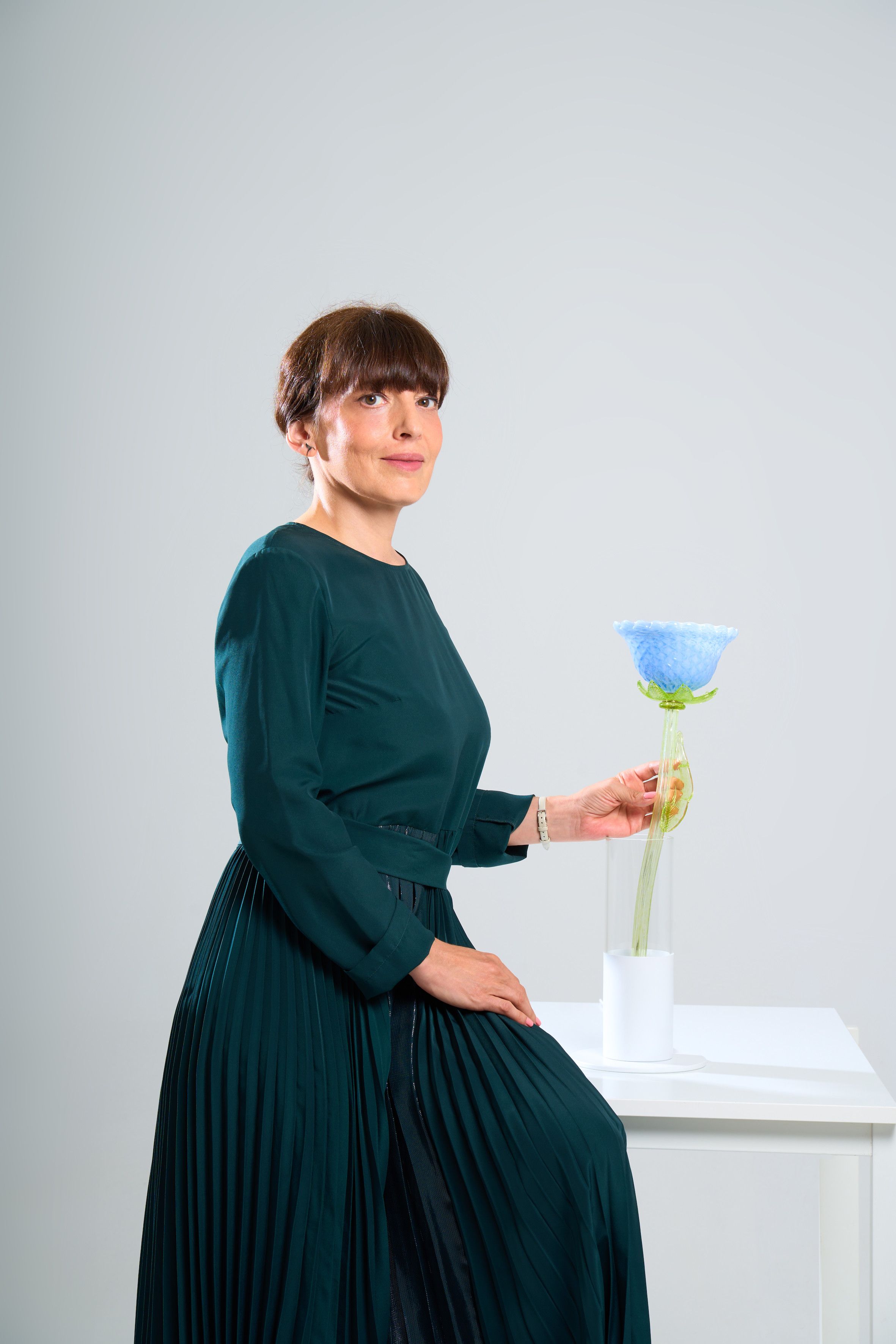 Flowers in Wonderland è la nuova collezione disegnata da Alessandra Baldereschi per Multiforme: sei fiori in vetro di Murano si 'accendono' quando inseriti nell'apposito vaso