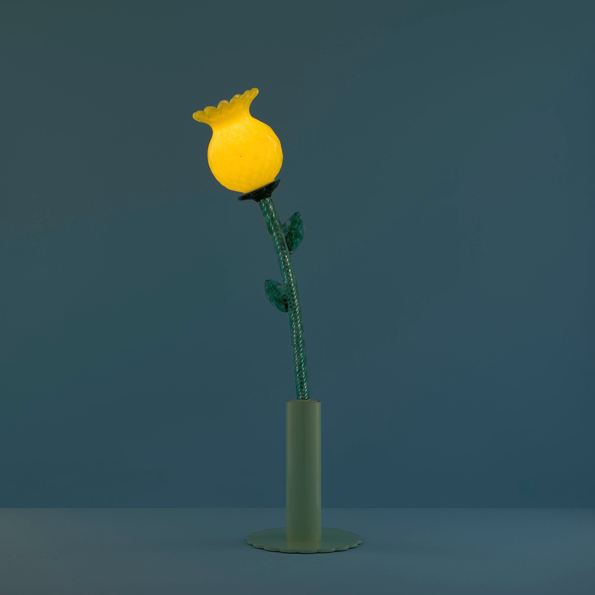 Le linee fluide dello stelo, le proporzioni tondeggianti del bocciolo e l’alternanza di toni e finiture conferiscono tridimensionalità e profondità alla composizione, trasmettendo un effetto armonico. Quando il fiore e l'apposito vaso entrano in contatto, nasce la lampada da tavolo Multiforme: grazie alla sorgente LED incastonata al centro della corolla, ogni fiore diffonde una luce lieve e soffusa.