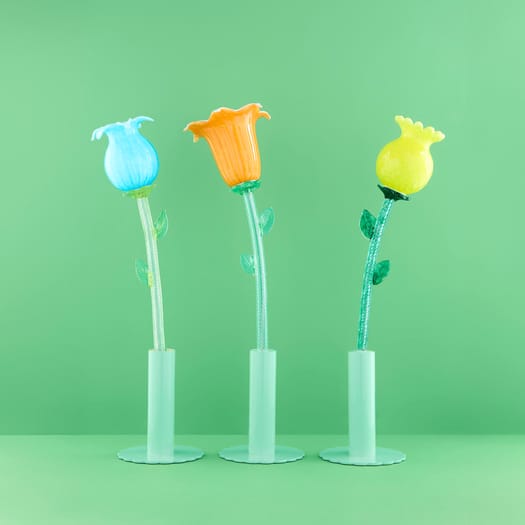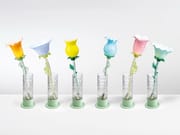 24/10/2025 - Un viaggio nel Paese delle Meraviglie con 'Flowers in Wonderland', la collezione di lampade da tavolo Multiforme disegnata da Alessandra Baldereschi. Sei fiori non ancora schiusi realizzati in vetro di Murano 'si accendono' quando inseriti nell'apposito vaso.Scelti in tenui tonalità pastello, i boccioli di Flowers in Wonderland sono disegnati con tratto fiabesco e una volta illuminati si arricchiscono di affascinanti trasparenze e sfumature cromatiche. Realizzati in sei varianti di forma e colore, i fiori sono impreziositi da particolari texture che prendono vita dalla soffiatura e dalle lavorazioni tradizionali del vetro di Murano.
