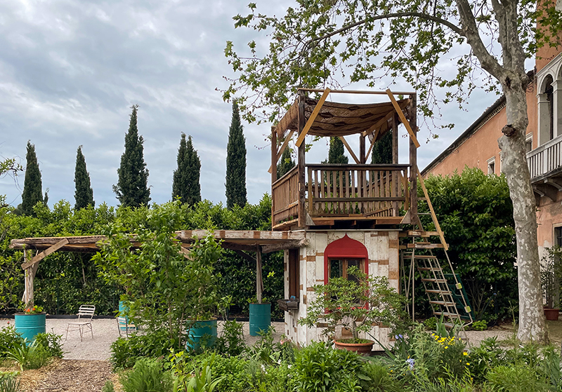 “Il giardino temporaneo realizzato da studio Albori nel cortile dell’Abbazia di San Giorgio Maggiore e l’installazione di Alvaro Siza nella Manica Lunga del convento compongono la Partecipazione della Santa Sede alla 18. Biennale di Architettura di Venezia. Le figure umane dell’opera di Siza culminano in una scultura in marmo che introduce i visitatori al giardino, un orto temporaneo aperto da maggio a novembre 2023.