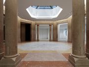 La lobby monumentale, cuore del progetto, celebra i materiali e le proporzioni originarie: il marmo domina lo spazio e riflette la luce naturale proveniente dal cavedio ottagonale, completamente restaurato. Questo lucernario centrale diventa il fulcro luminoso attorno a cui si sviluppano gli ambienti per uffici, pensati per garantire flessibilità e benessere.