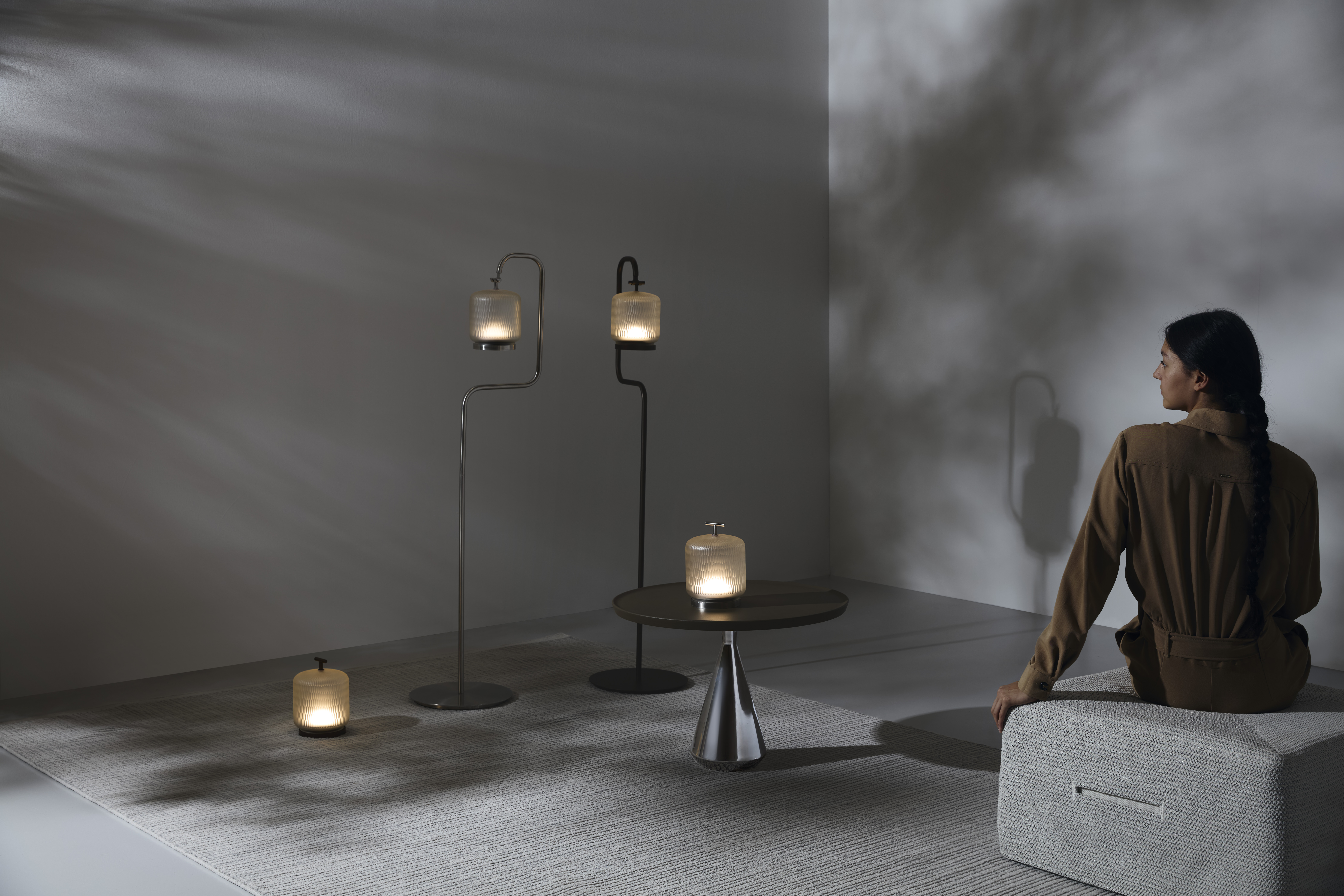 Racconta Paolo Zani: “La ricchezza delle incisioni, la texture avvolgente del vetro e la sfumatura morbida della luce emessa, trasformano questa lanterna in un oggetto prezioso e affascinante, capace di coniugare funzionalità e poesia visiva. Un oggetto luminoso che grazie alla base da terra trasportabile si inserisce con grazia in ogni ambiente, dentro e fuori casa.”