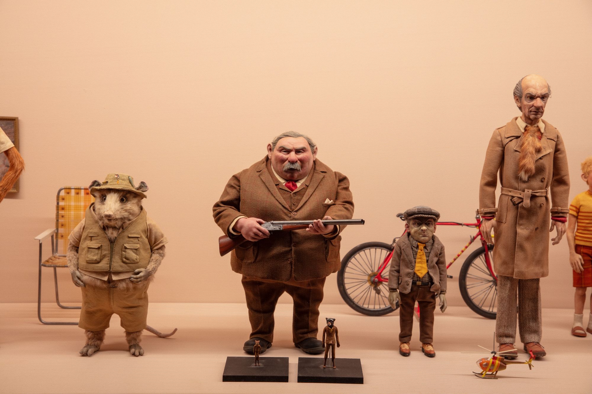 Tra gli oggetti più ammirati spicca il modello rosa confetto del Grand Budapest Hotel, largo oltre tre metri, utilizzato per catturare la facciata dell’edificio nel film del 2014. Accanto a lui sono esposti i pupazzi originali di Fantastic Mr Fox (2009) e Isle of Dogs (2018), che svelano l’incredibile cura artigianale e il processo di stop motion alla base dei suoi mondi in miniatura. Anche distributori automatici di Asteroid City (2023) e la pipa Dunhill e il pugnale gioiello di The Phoenician Scheme mostrano l’attenzione di Anderson per ogni singolo dettaglio.