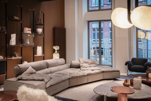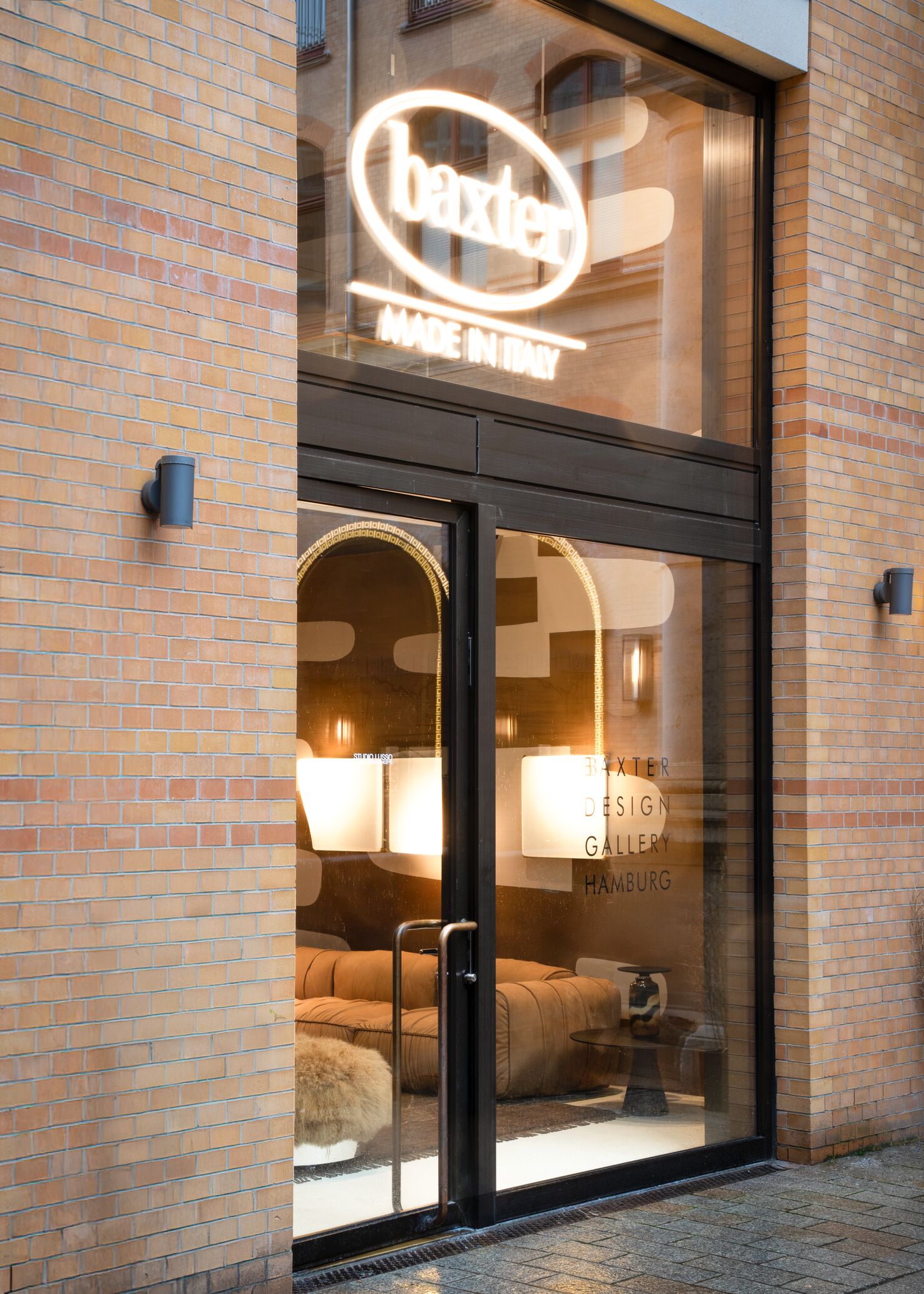 Affacciata sul canale Bleichenfleet, la gallery è un monobrand che unisce la luce nordica e l’essenzialità dell’architettura amburghese al calore materico di Baxter. Un dialogo continuo tra acqua, materia e design.