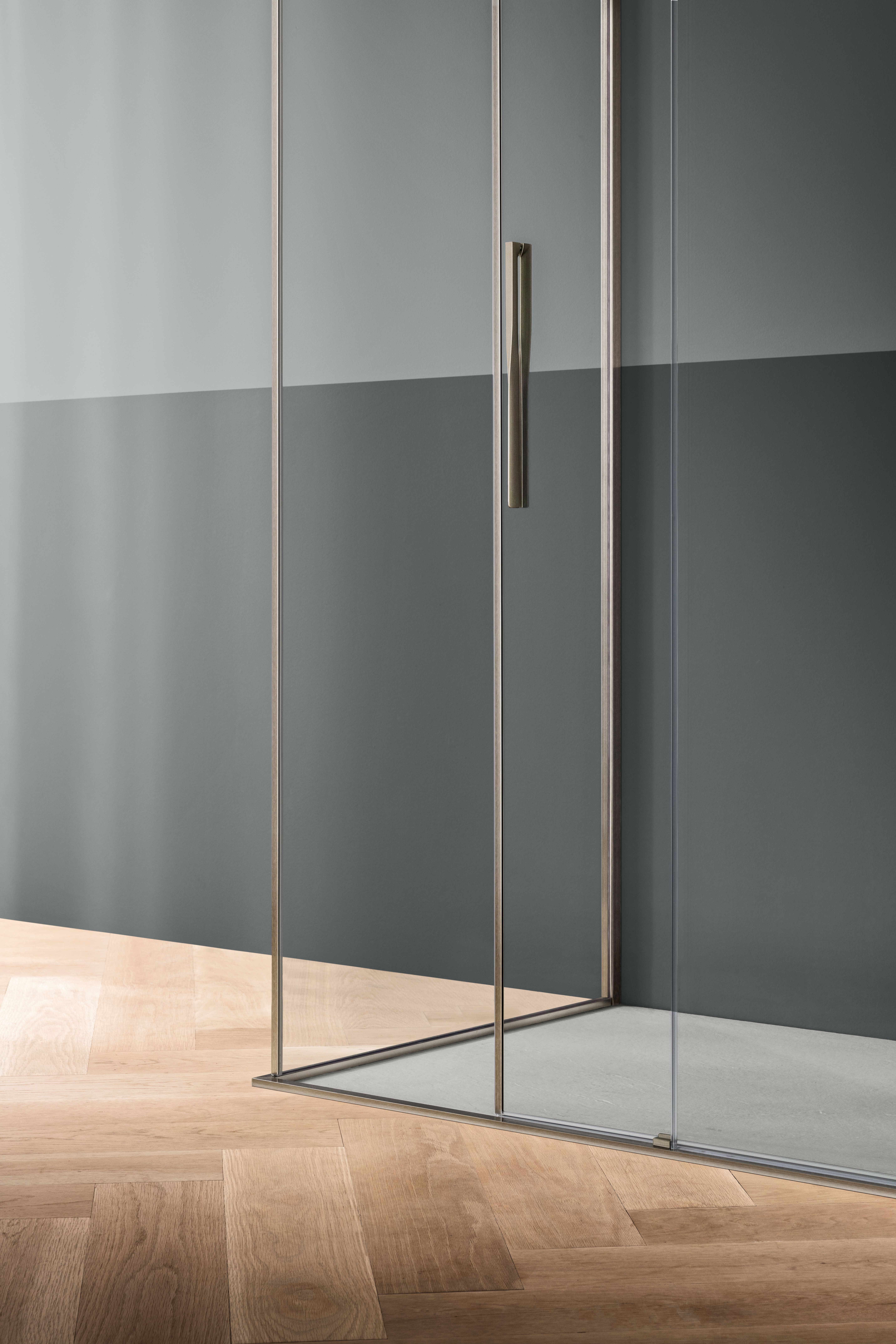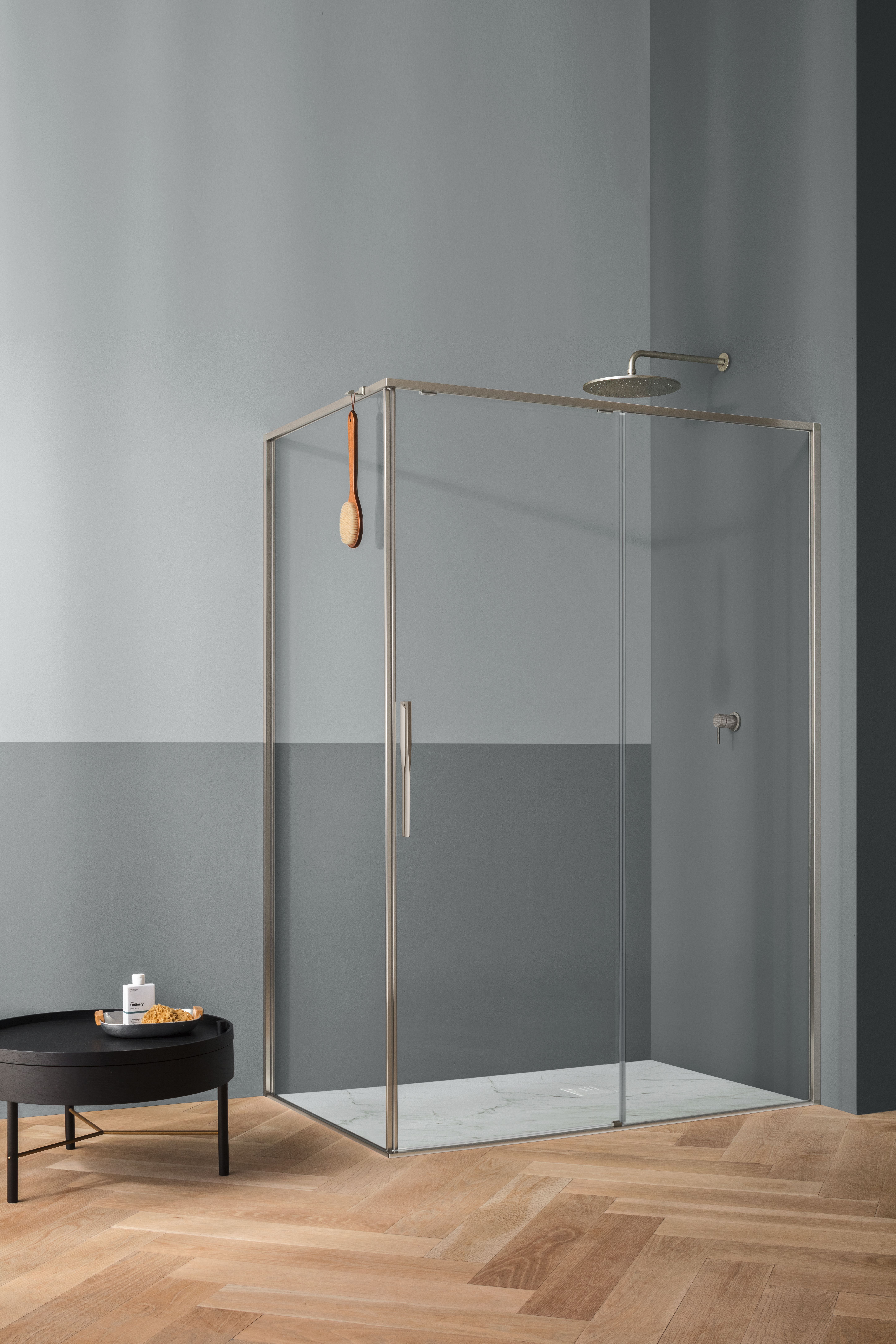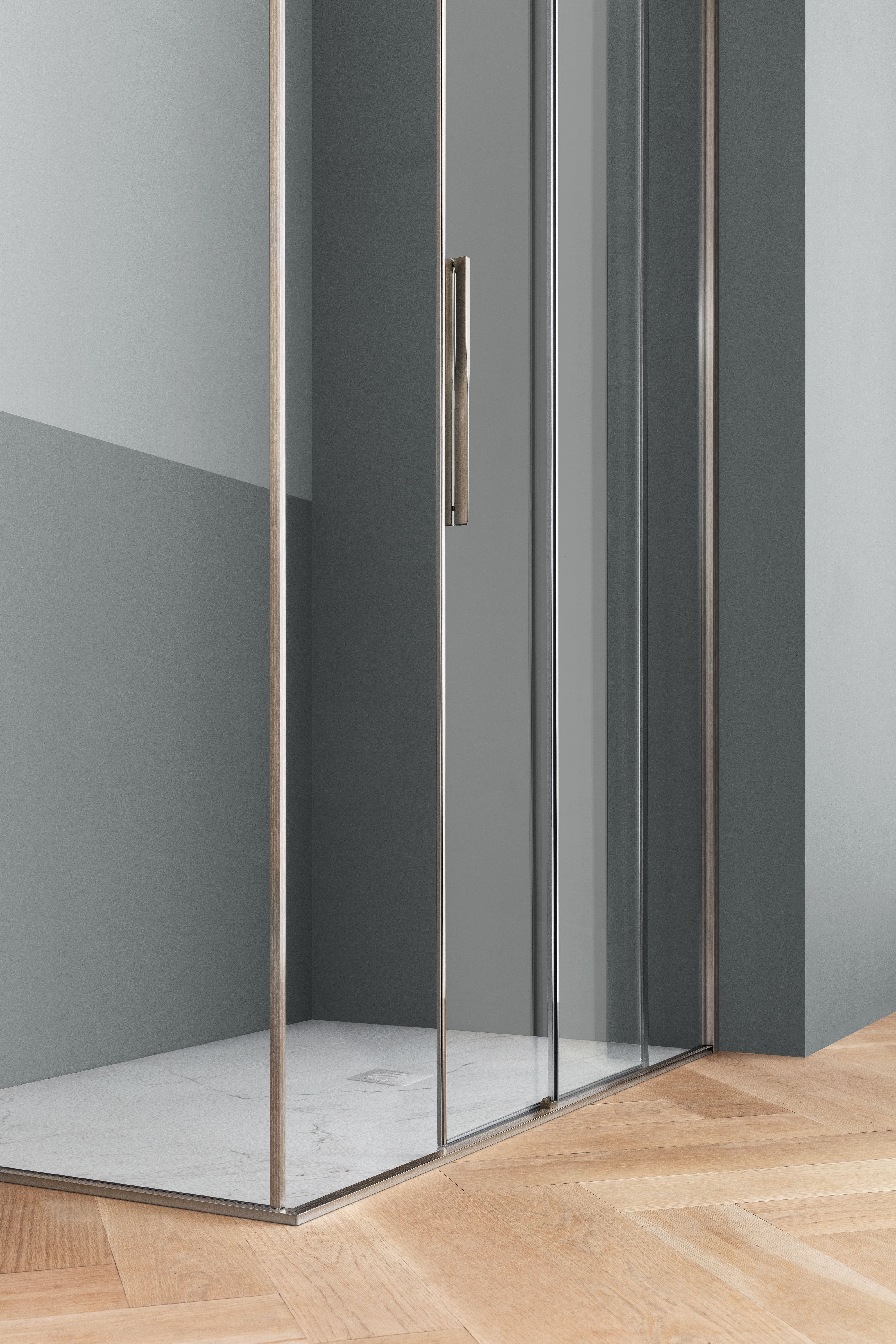 Soluzioni tecniche migliorate: è stato introdotto un sistema di bordino salvagoccia opzionale per la configurazione scorrevole, che garantisce la minima fuoriuscita d'acqua e mantiene l'ambiente bagno asciutto.