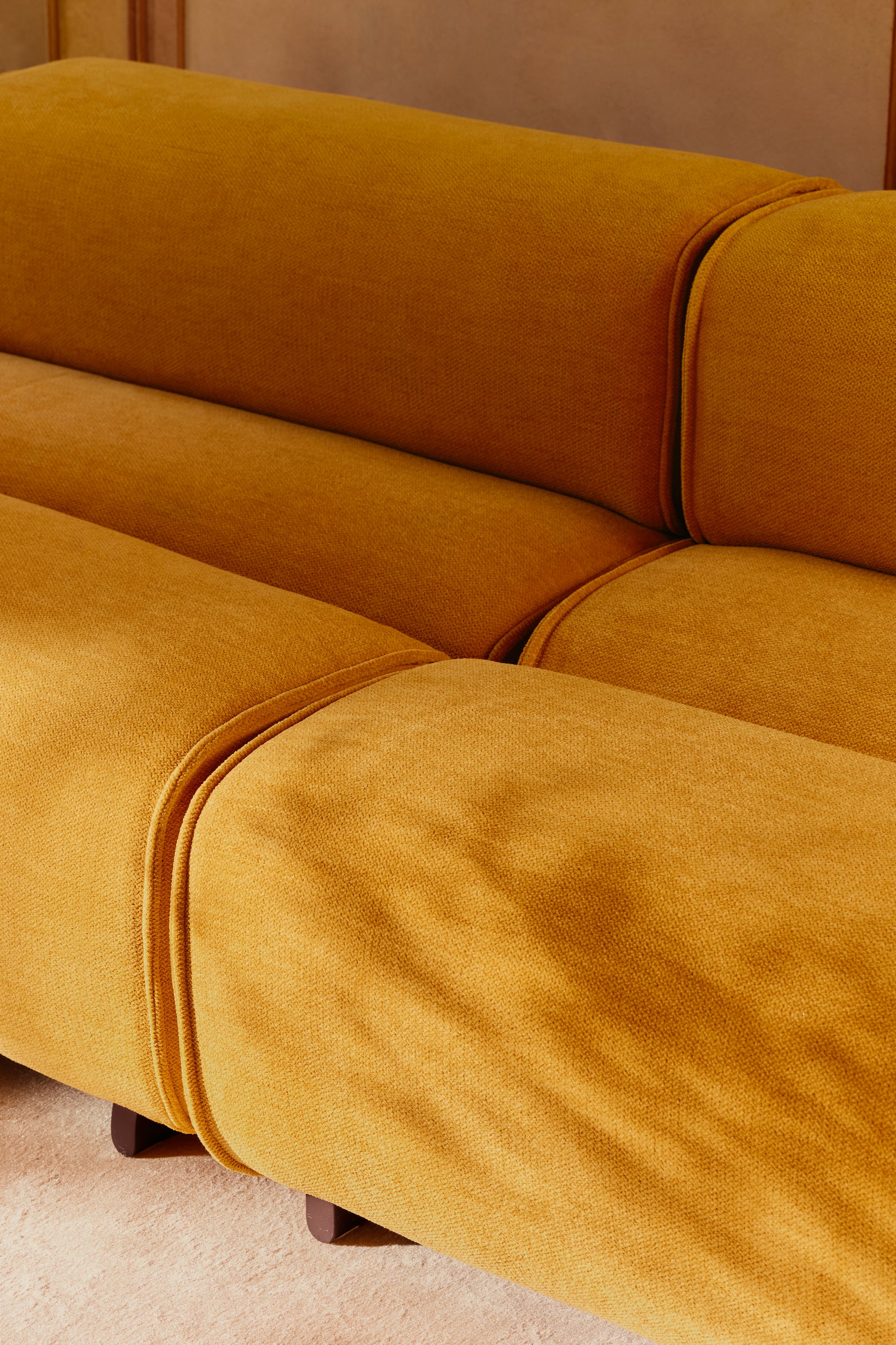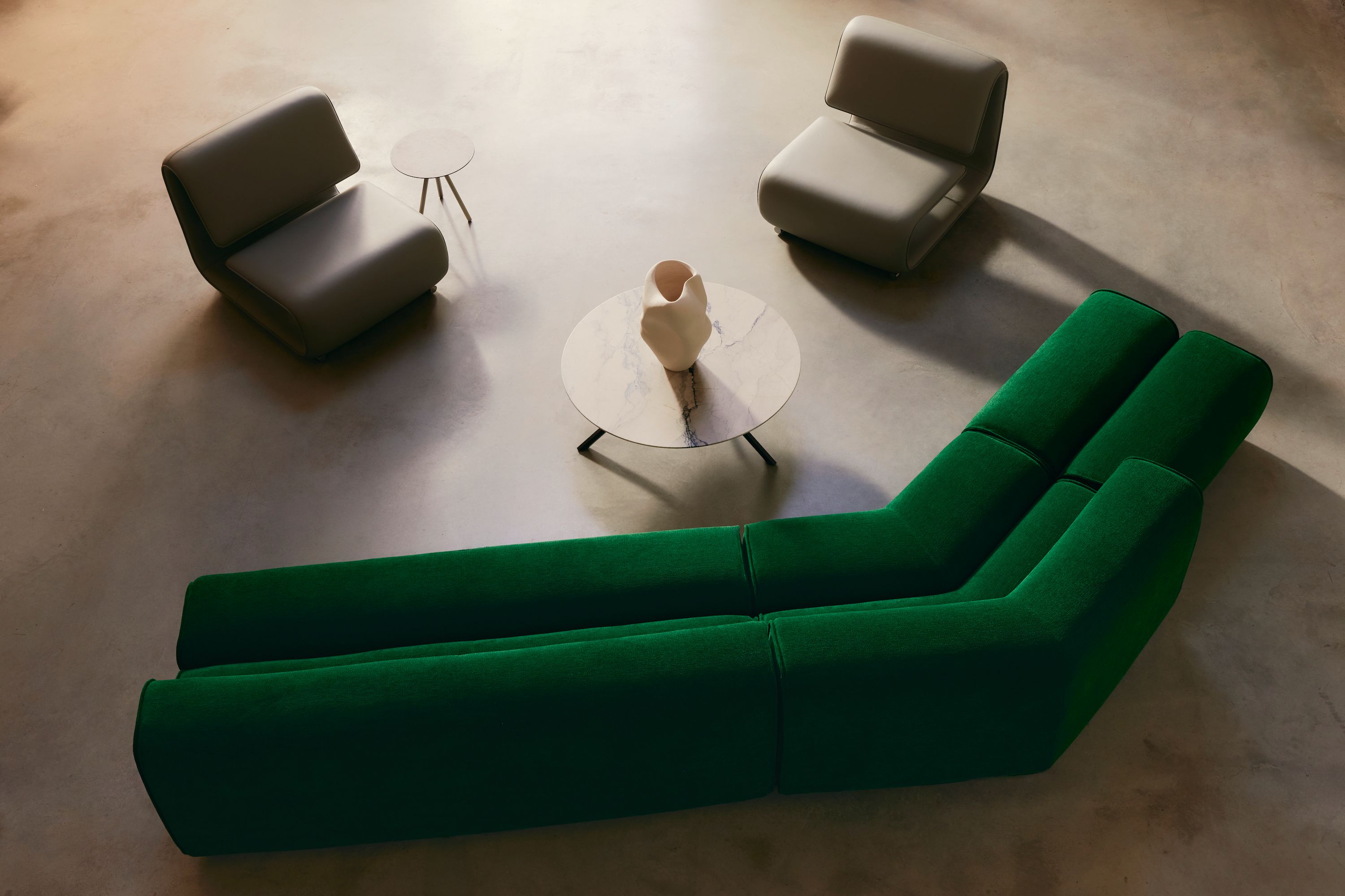 La versatilità di Unlimited nasce da una struttura progettuale aperta: partendo da un elemento base quadrato e da schienali avvolgenti, è possibile creare pouf, poltrone, chaise longue e daybed in infinite configurazioni.
