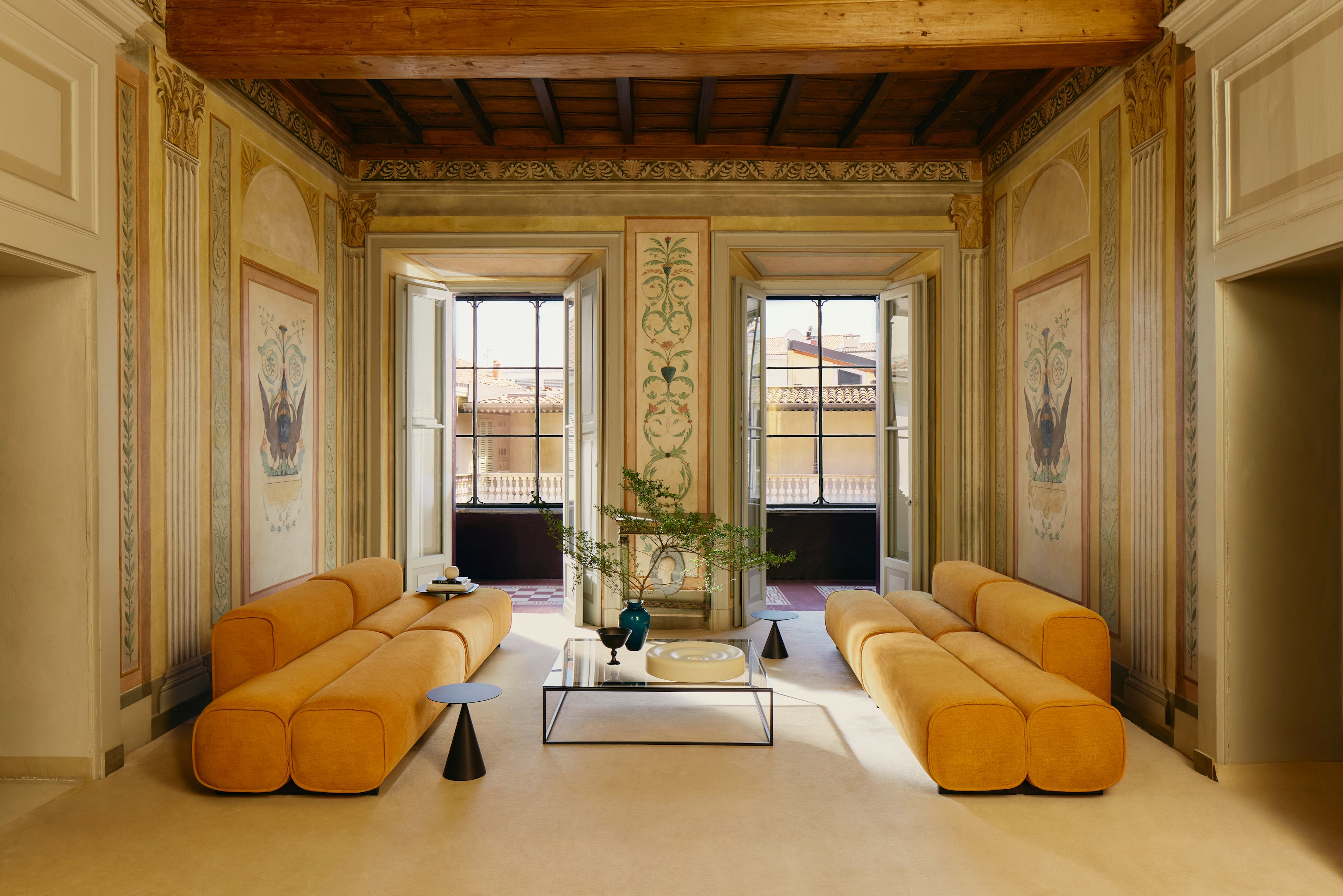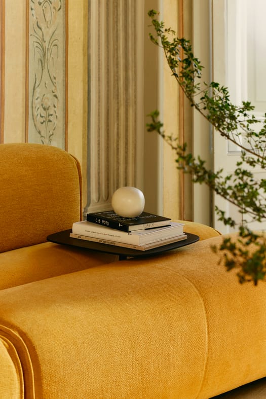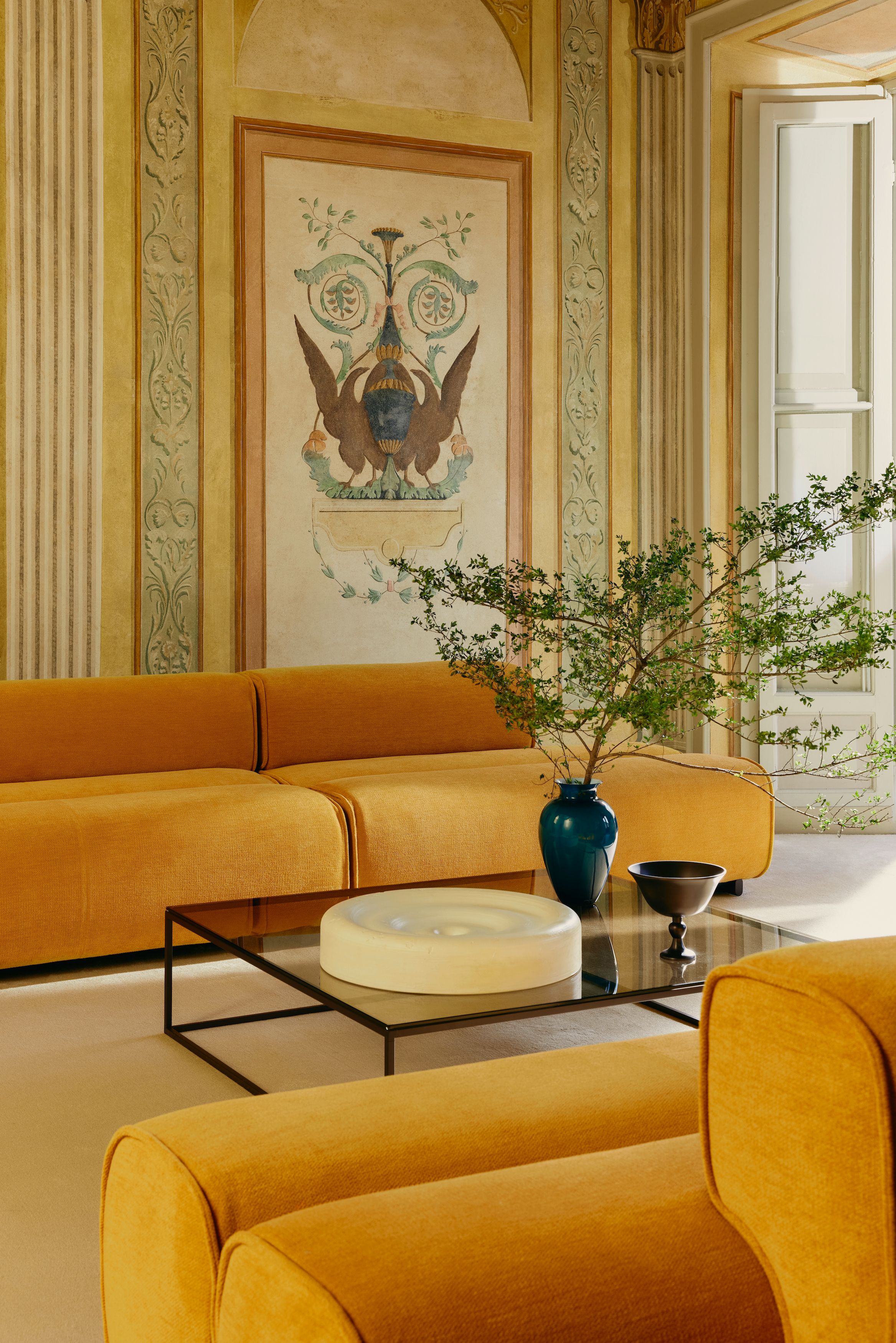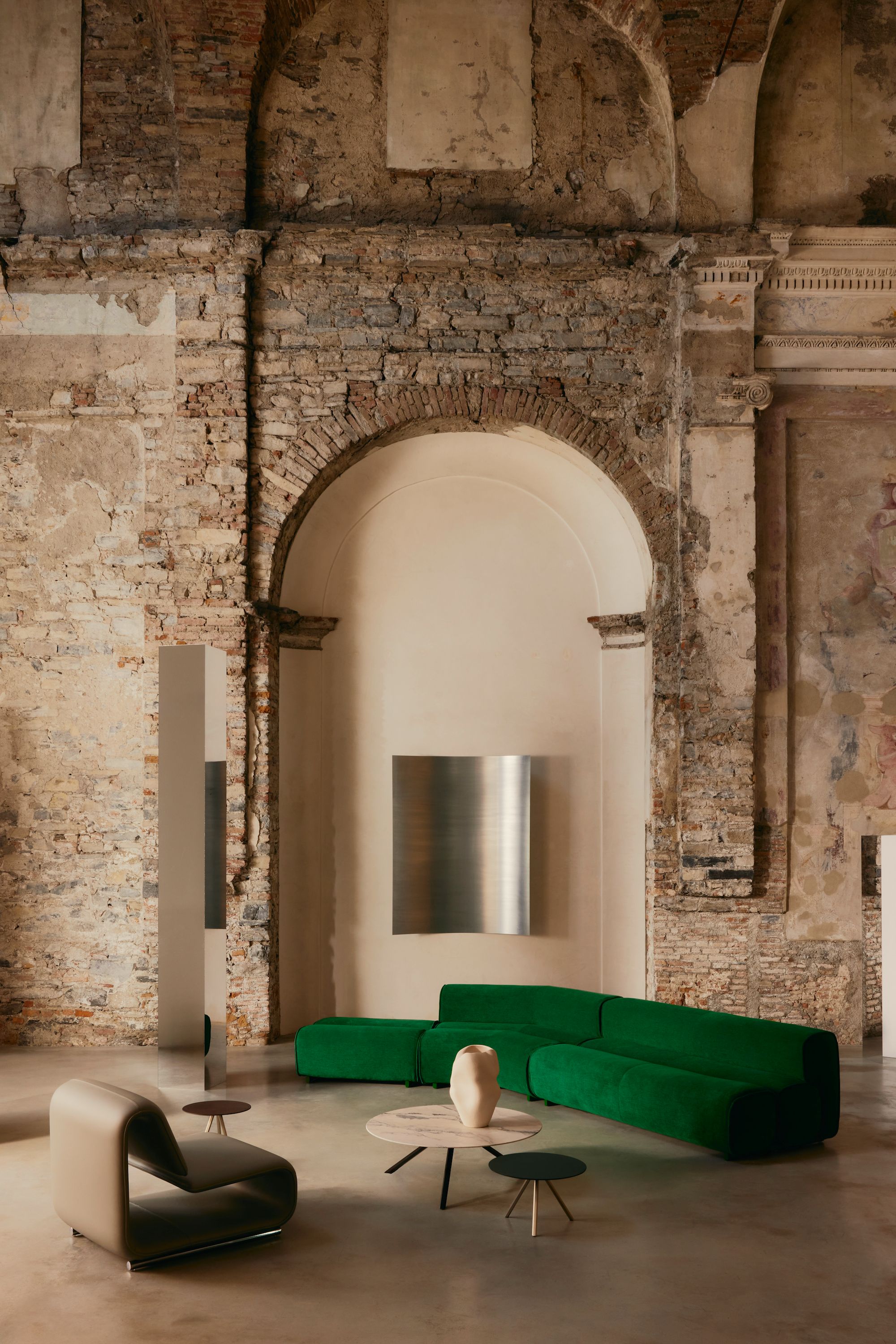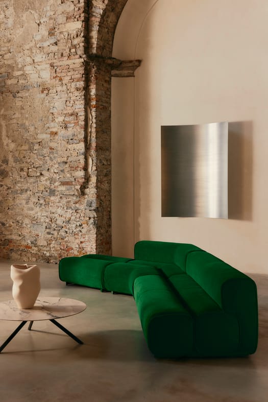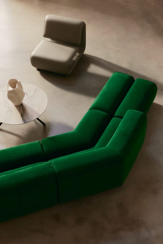 Dai tessuti morbidi degli imbottiti ai metalli lucidi o opachi, il colore, denso ma mai invadente, attraversa le collezioni valorizzando volumi e geometrie