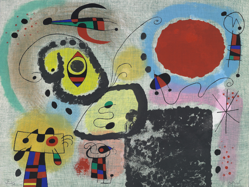 Centenario Mourlot 1953 - Litografia originale a colori 50×65 cm - 75 esemplari numerati e firmati a matita dall’artista più 30 prove d’artista denominate “E.a.” firmate Mourlot Editore e stampatore Joan Miró Litografo vol.II, Edizioni Graphis Arte, Livorno - Toninelli Arte Moderna, Milano 1982, n.122