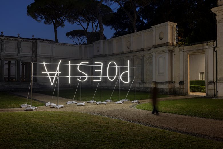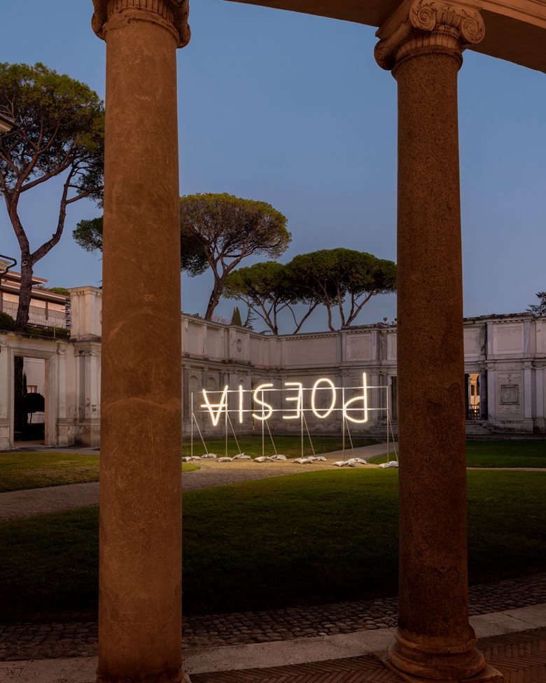 02/12/2025 - Fino al 6 febbraio 2026, gli spazi esterni del Museo Nazionale Etrusco di Villa Giulia a Roma ospitano POESIA, un’installazione luminosa site-specific firmata da Marcello Maloberti e curata da Cristiana Perrella.