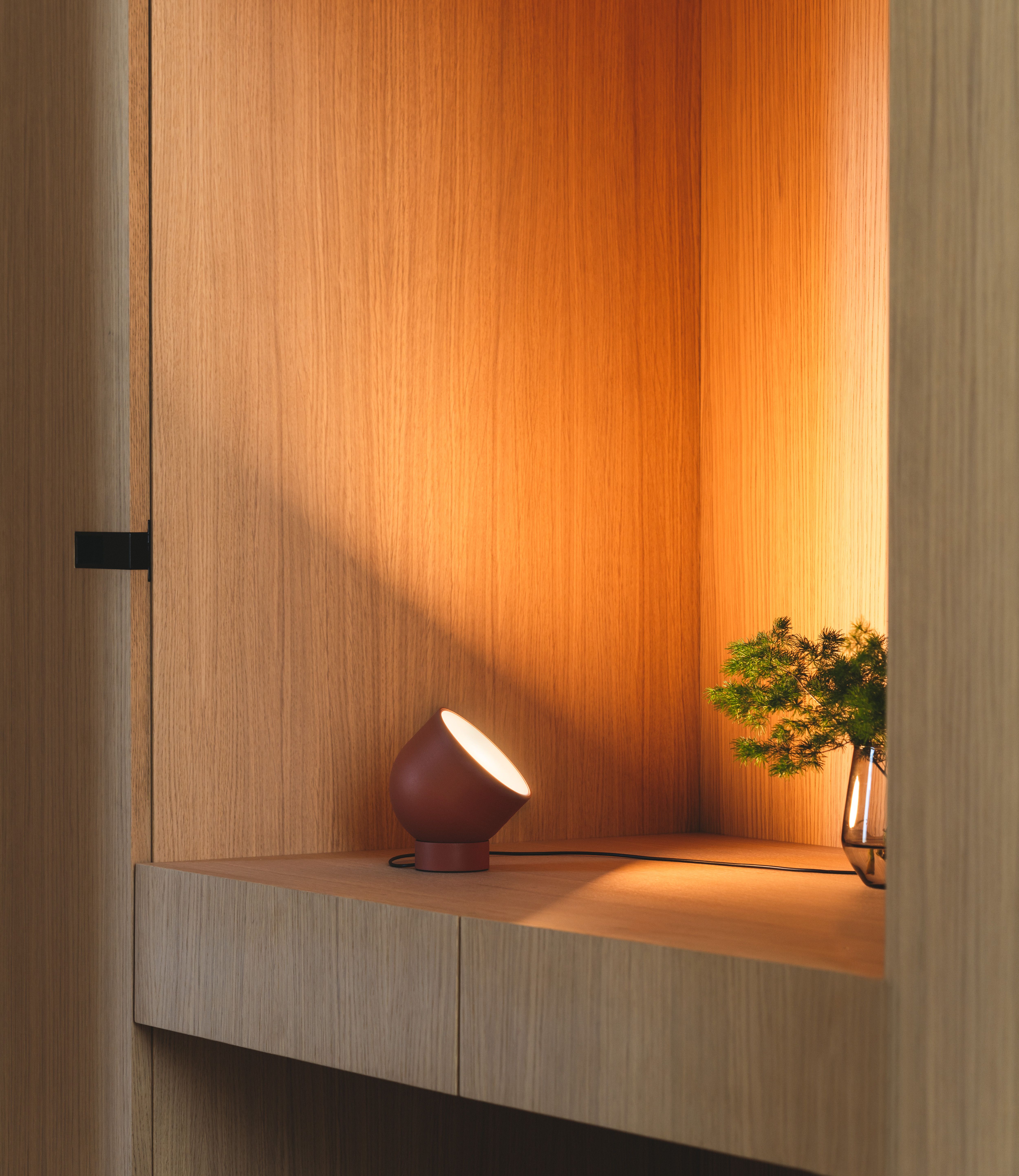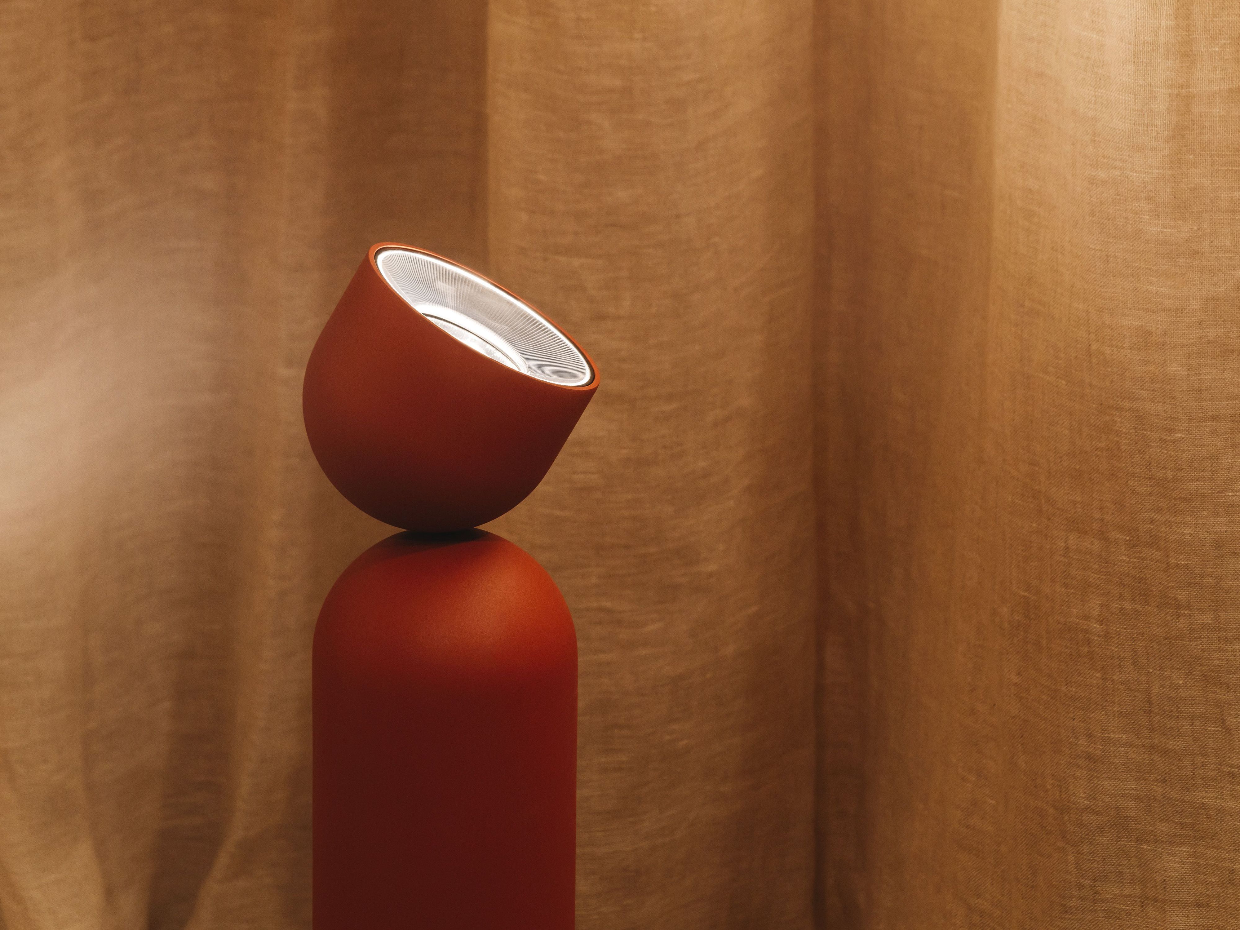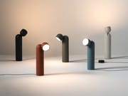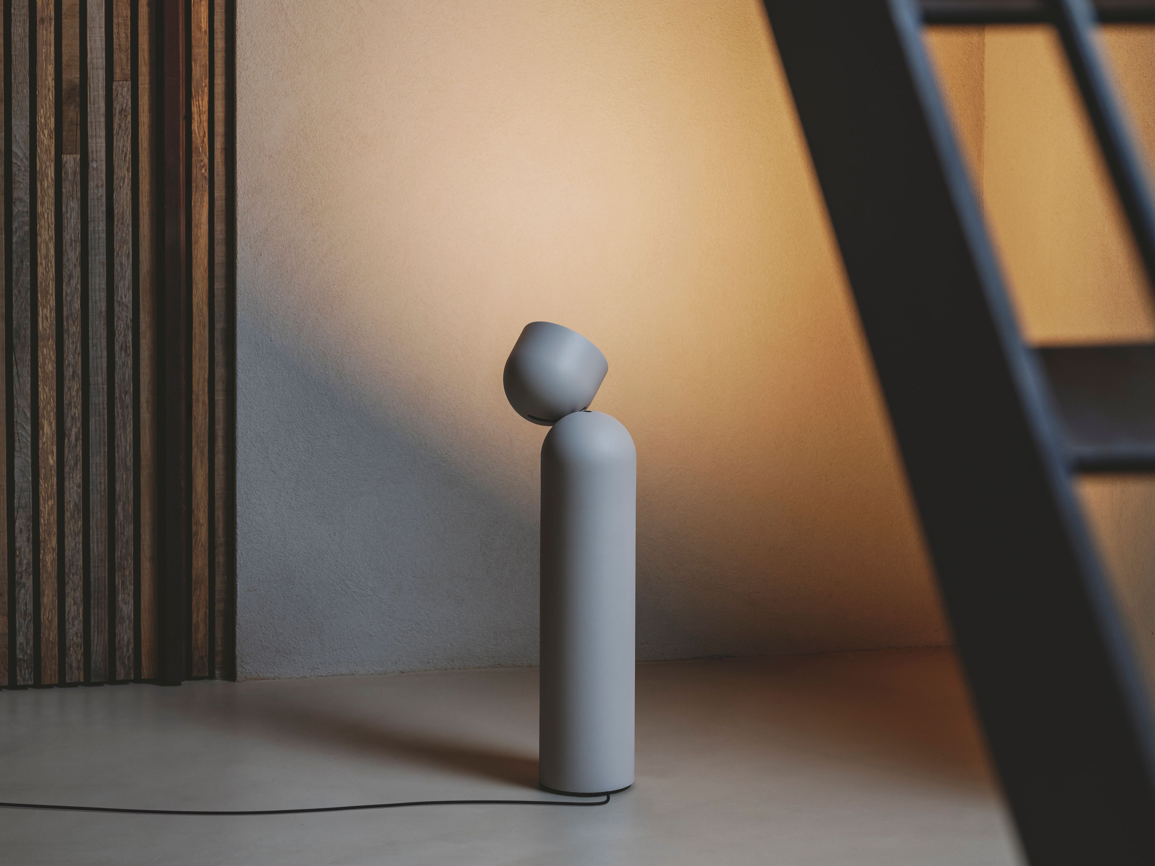 Il secondo design abbina una base cilindrica slanciata a una testina semi-sferica regolabile. Anche in questo caso la lampada è disponibile nella versione faretto d’accento o diffusore piatto, ed è dotata di una silhouette giocosa che conferisce carattere agli ambienti minimalisti. Posizionata a terra o su un tavolo e orientata per accentuare la profondità visiva e il flusso dello spazio, permette di creare composizioni dinamiche che tengano conto di ogni possibile utilizzo dell’ambiente.