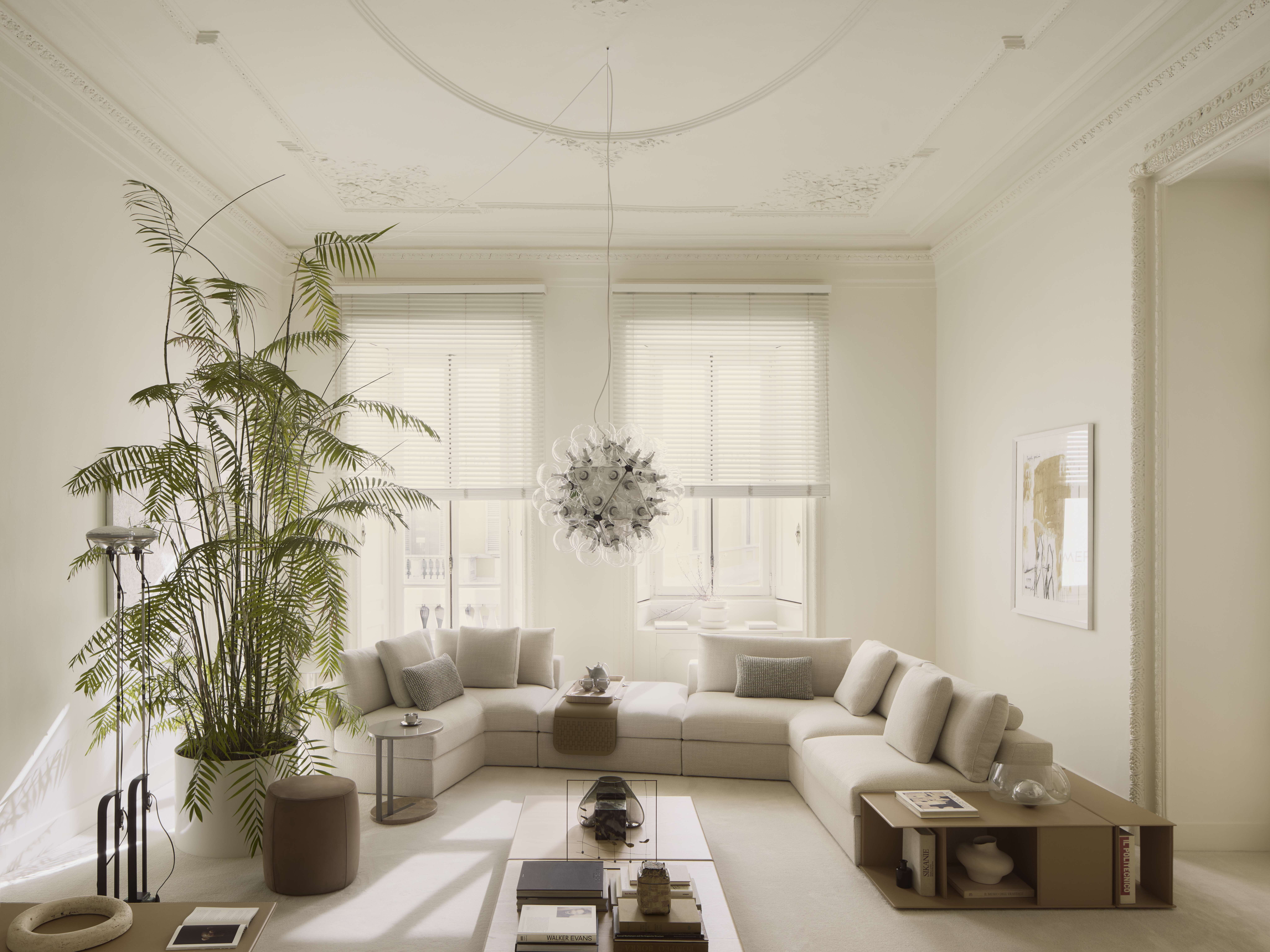 Pensato appositamente con uno sguardo speciale al rinnovato divano modulare Louis, il nuovo set-up parigino mostra una selezione curata e armonica delle collezioni più iconiche del brand con differenti soluzioni di arredo.