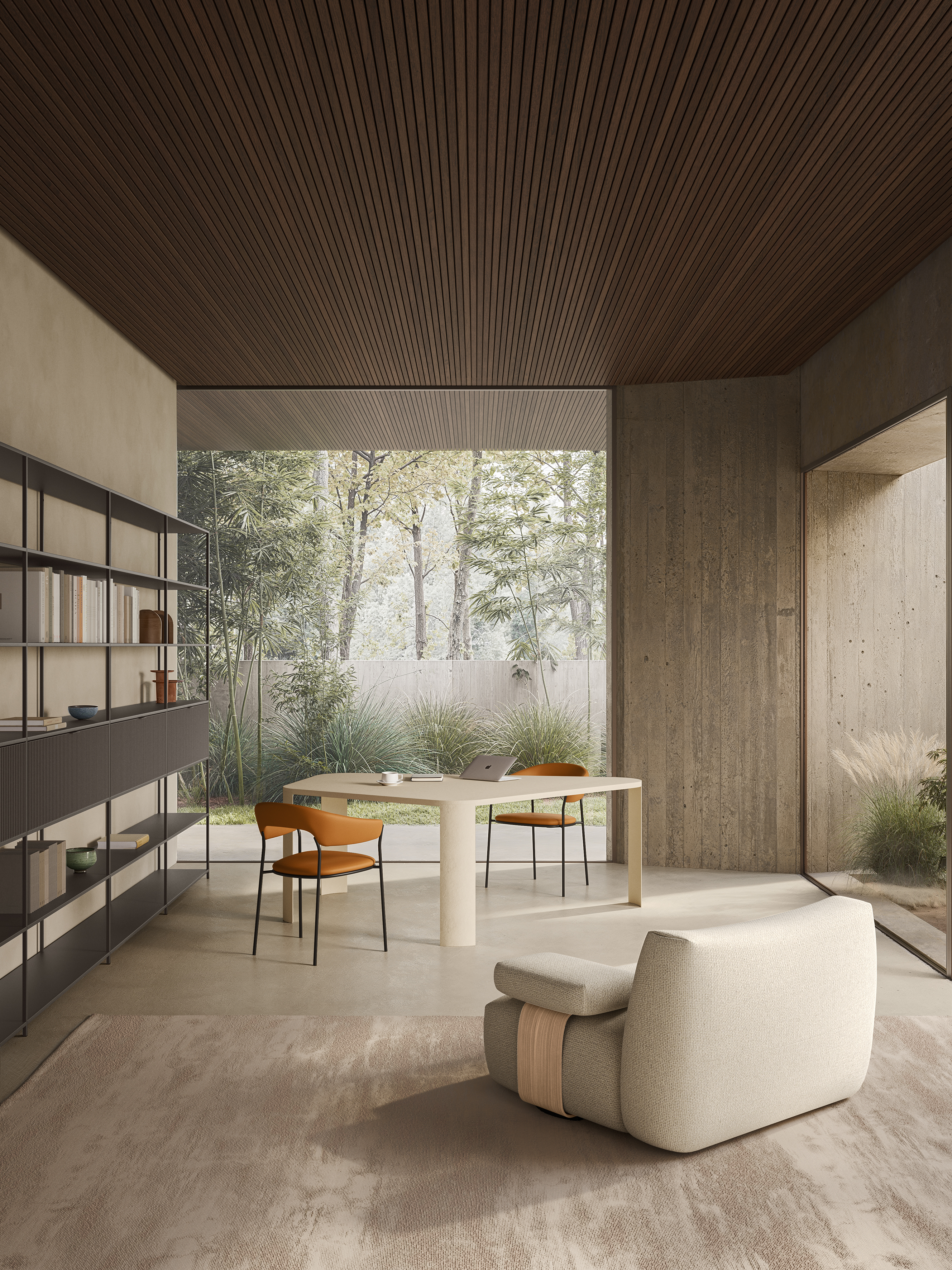 Anche nel mondo office e hospitality, l’essenzialità e la flessibilità del sistema lo rendono ideale per ambienti collettivi e professionali. Accanto alle versioni tradizionali, Minima office garantisce una maggiore capacità contenitiva, offrendo più spazio tra i ripiani. Completano il sistema una gamma di accessori opzionali, tra cui vani a giorno, contenitori con ante e cassetti, disponibili in diverse finiture, che ampliano ulteriormente le soluzioni compositive e consentono di personalizzare ogni progetto con coerenza e precisione.